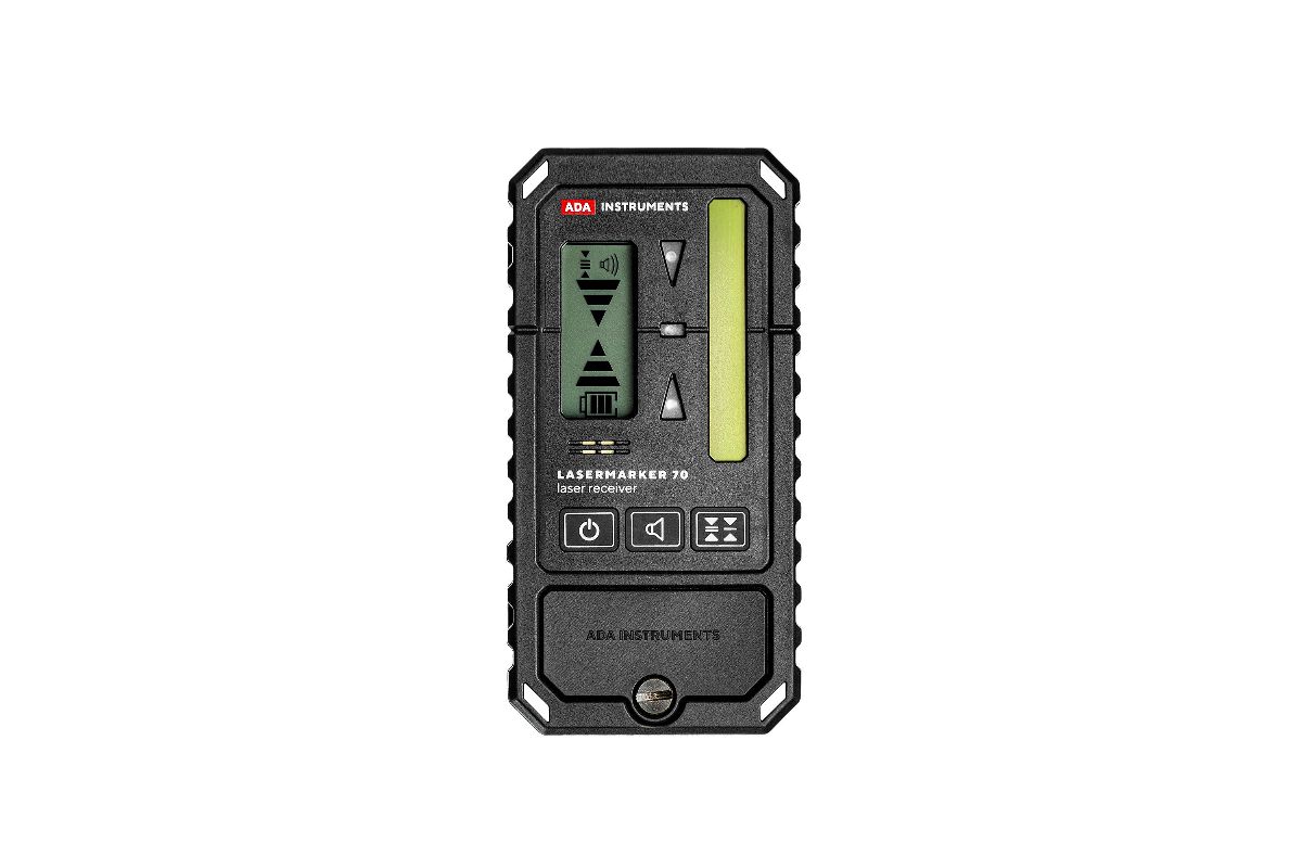 - Работа с приемником ADA LASERMARKER 70 позволяет увеличить дальность при ярком освещении, в условиях плохой видимости лазерного луча. При работе на больших расстояниях, когда увидеть лазерный луч не представляется возможным, приемник незаменим. Когда невозможно определить середину луча для разметки ADA LASERMARKER 70 поможет ее точно определить. Точность определения для уверенного обнаружения можно настроить.