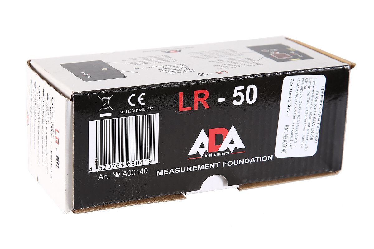 ADA LR-50 — прибор для приема луча от лазерного нивелира. Улучшает видимость лазерного луча при ярком освещении, плохой видимости или на больших расстояниях. В комплекте с прибором поставляется источник питания — батарея 1,5В типа AAA. (Перед покупкой убедитесь, что у вашего нивелира есть режим работы с приемником.)