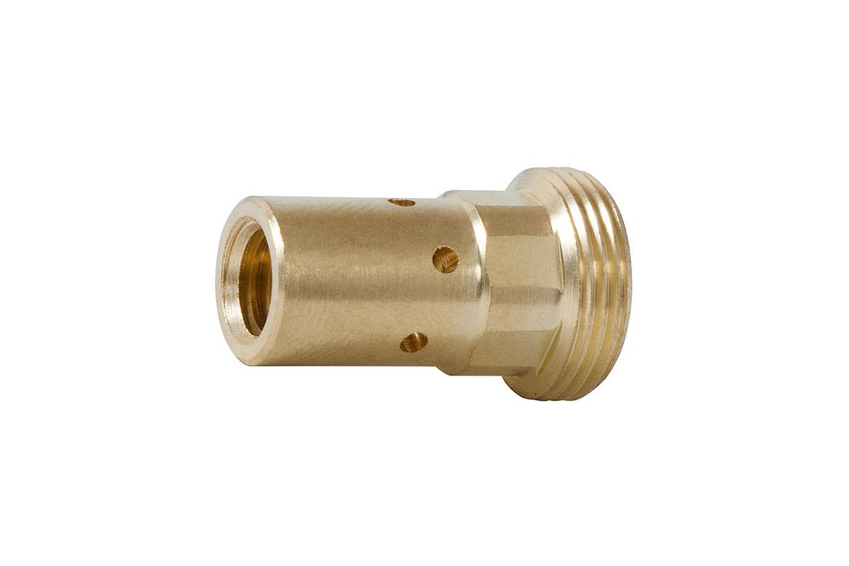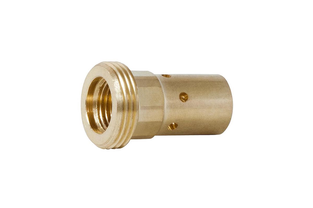 Вставка под наконечник M8/25 мм (Mig-500) -;предназначена для монтажа контактного наконечника в горелку. Вставка отвечает за равномерное распределение защитного газа внутри сопла и токоподвод к наконечнику. Все вставки, как правило, выполнены из латуни, имеют симметрично расположенные отверстия по всей окружности. Вставки под наконечник отличаются в зависимости от модели горелки, имеют разные размеры и внешний вид.; В некоторых MIG/MAG горелках вставка несет функцию диффузора. Россия; родина бренда.