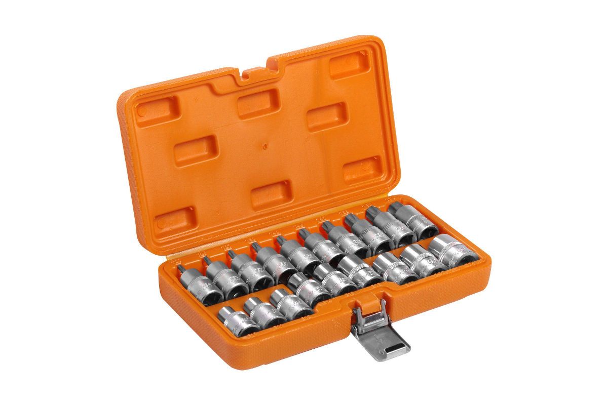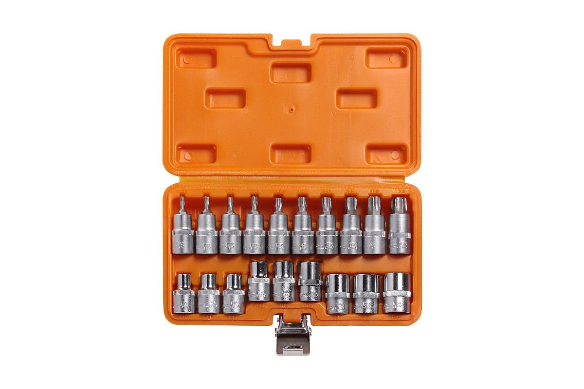 - Головка 1/2''DR: 10 шт (T20,T25,T27,T30,T40,T45,T50,T55,T60,T70);
