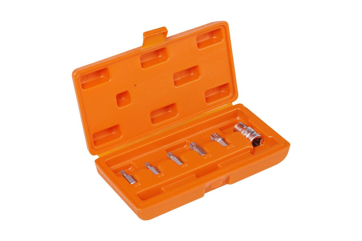 Набор бит AIRLINE AT-B-49 вставок SPLINE 3/8'' 30мм с держателем бит 1/2'' DR 6 предметов в кейсе