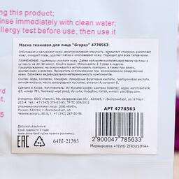 Маска содержит экстракт свежего винограда, который смягчает кожу, увлажняет, делает её гладкой и эластичной.
