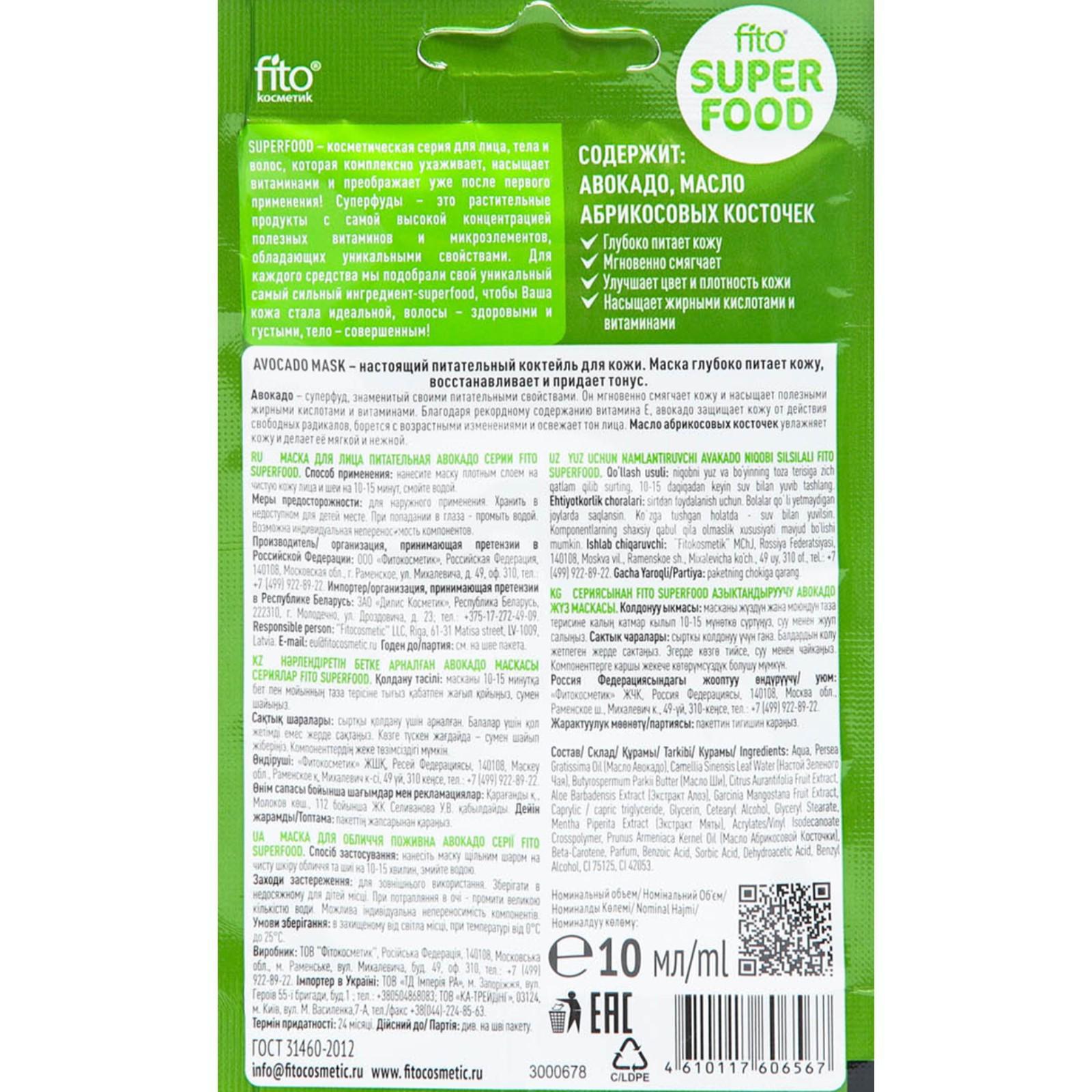 Маска для лица "FITO SUPERFOOD", питательная, "Авокадо", 10 мл