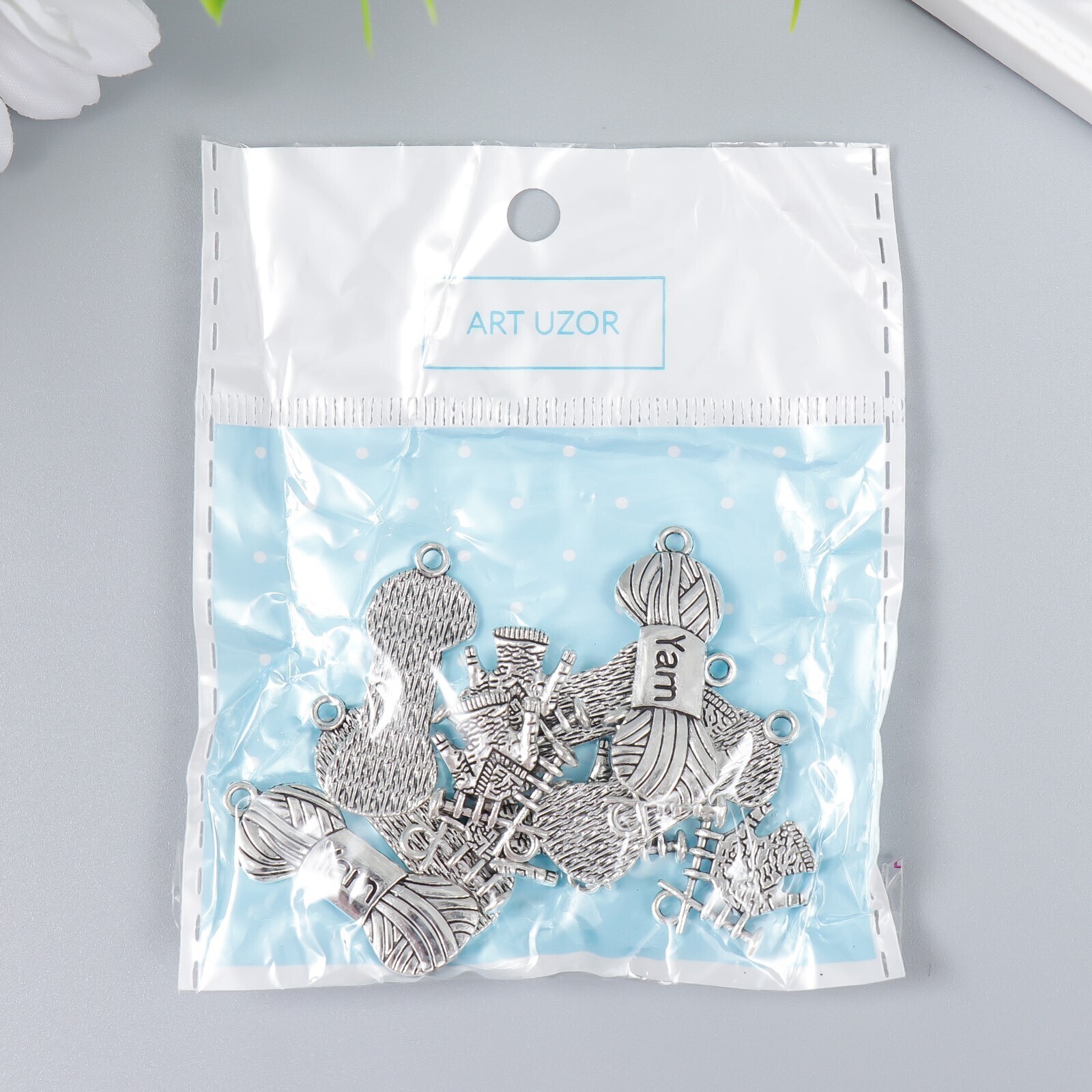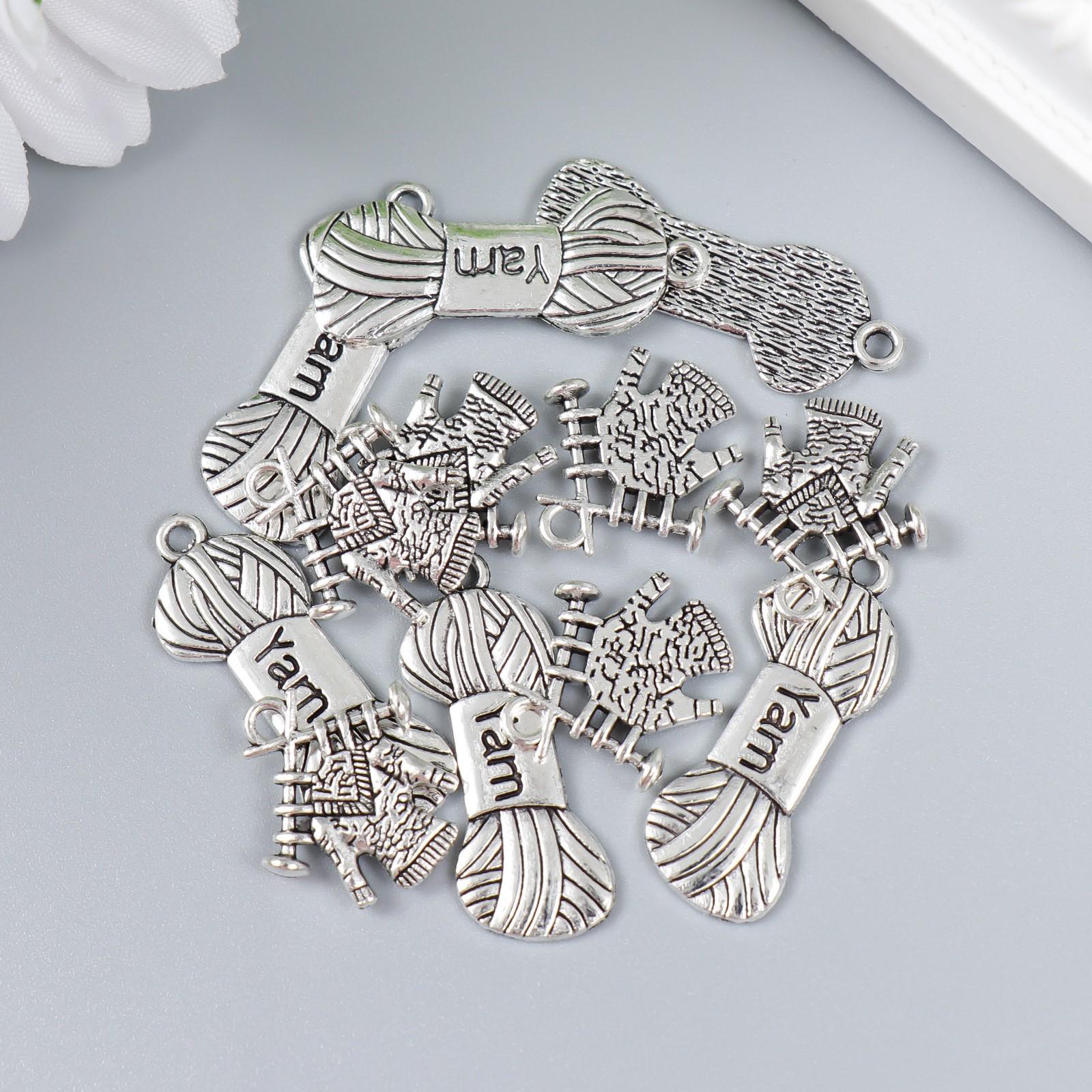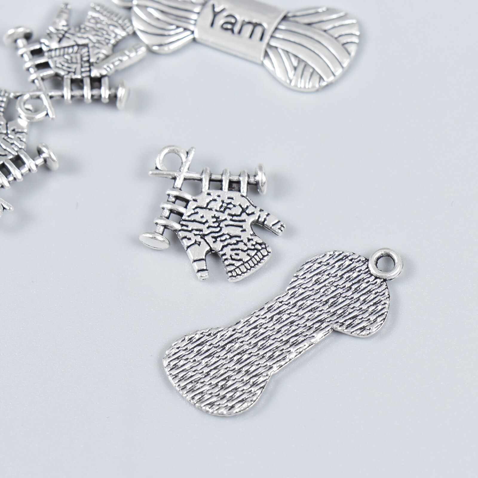 Декор для творчества металл "Пряжа и свитер" серебро набор 6+6 шт 3,1х1,2 см 1,7х1,9 см
