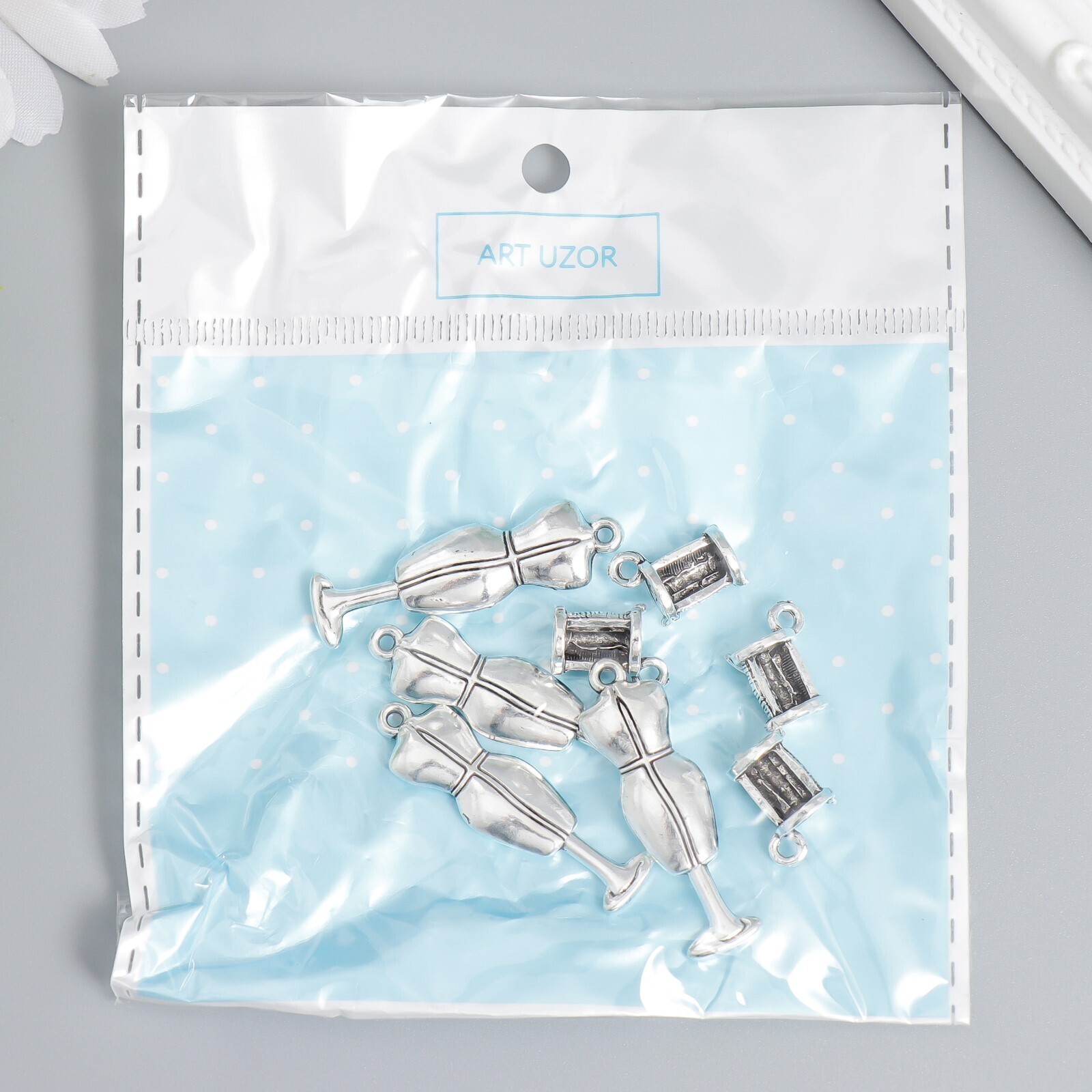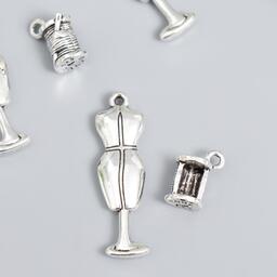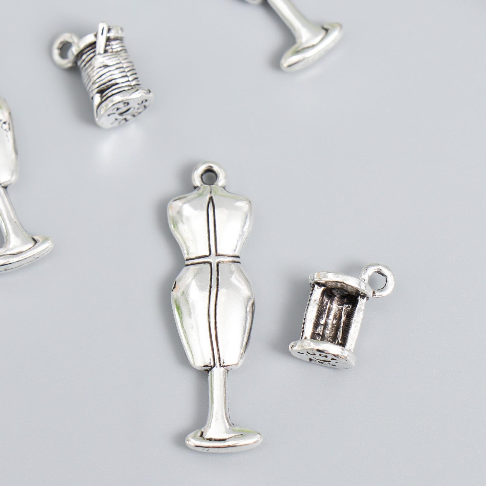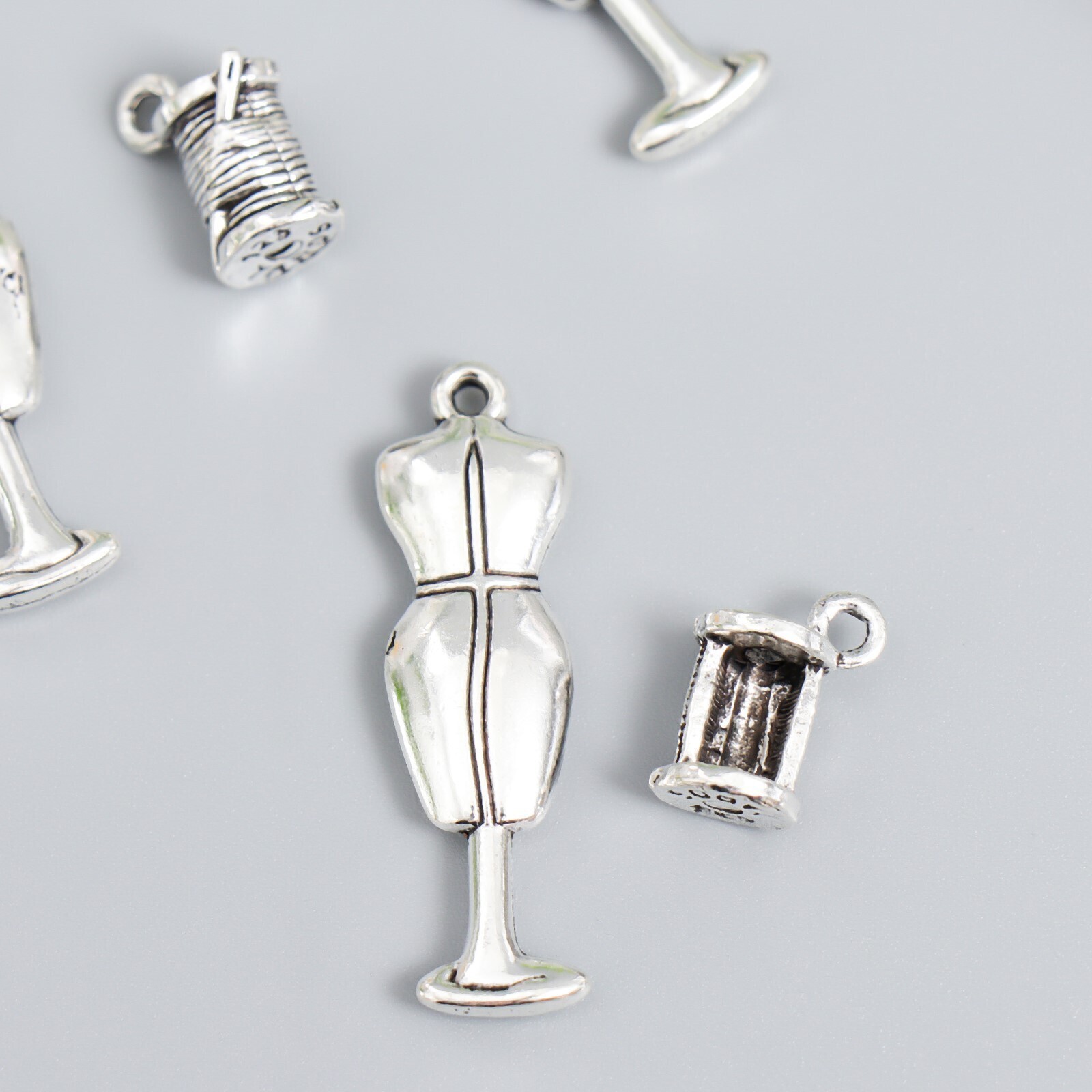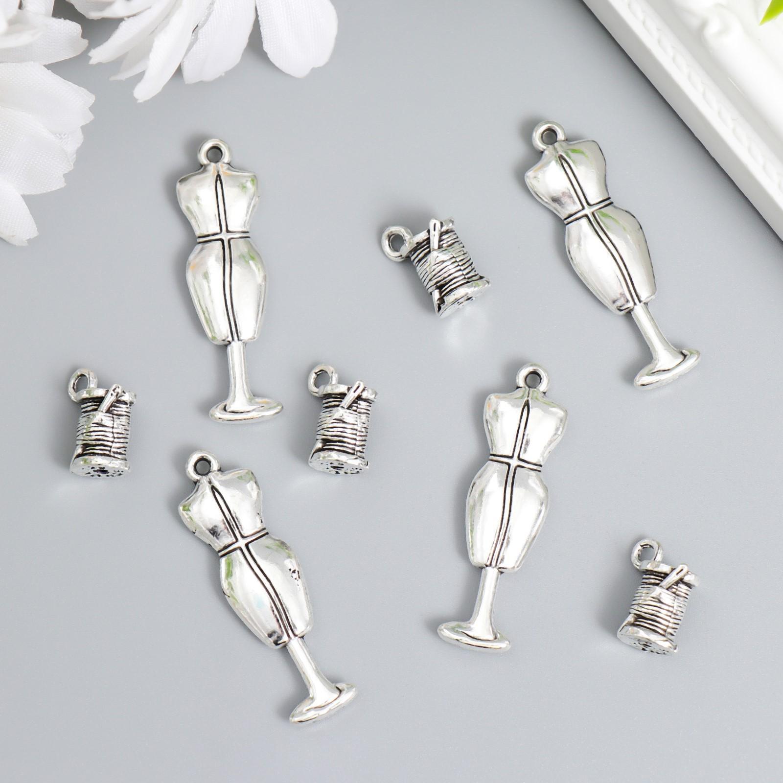 Декор для творчества металл "Манекен и нитки" серебро набор 4+4 шт 3,8х1,1 см 1,4х1,1х0,8 см 78800