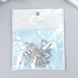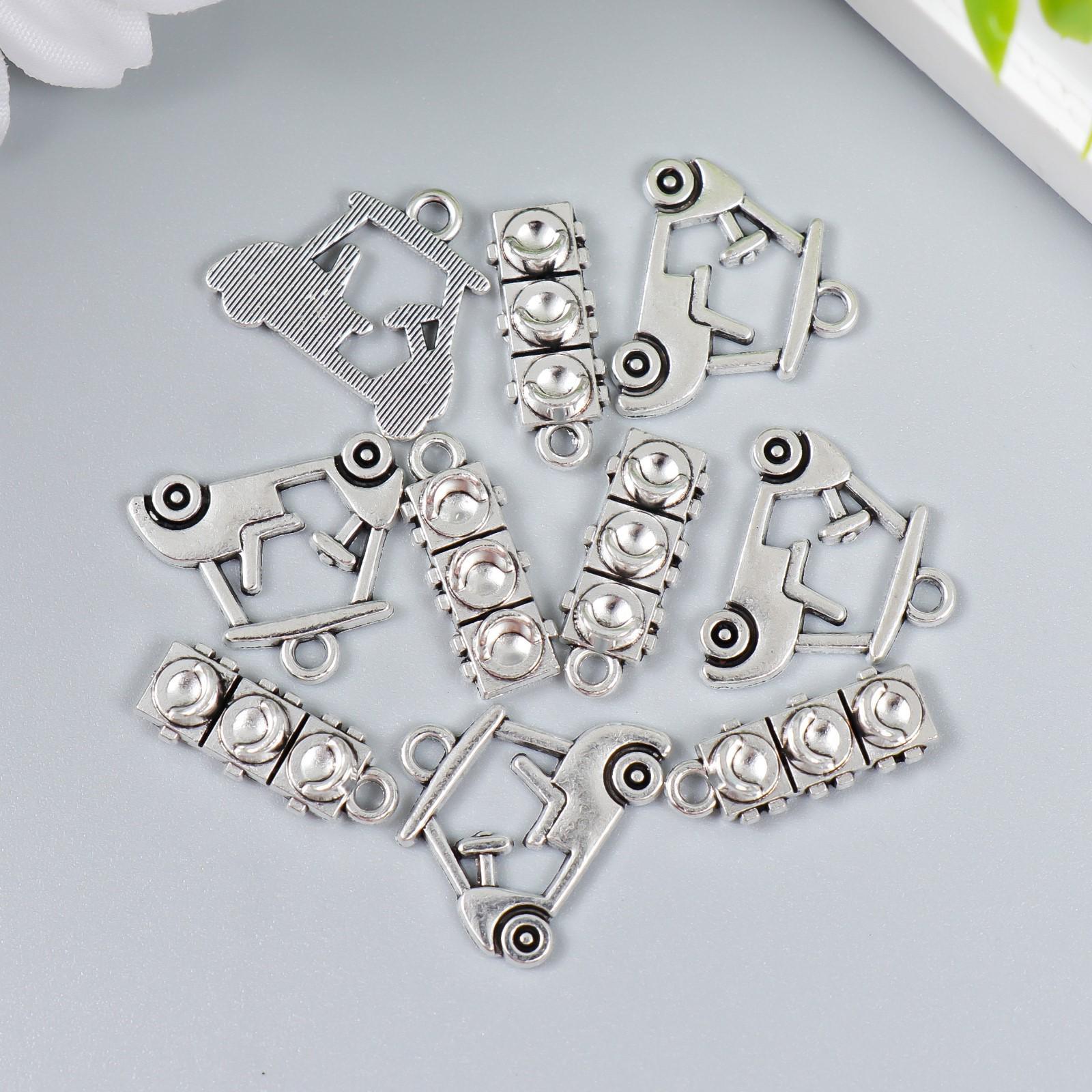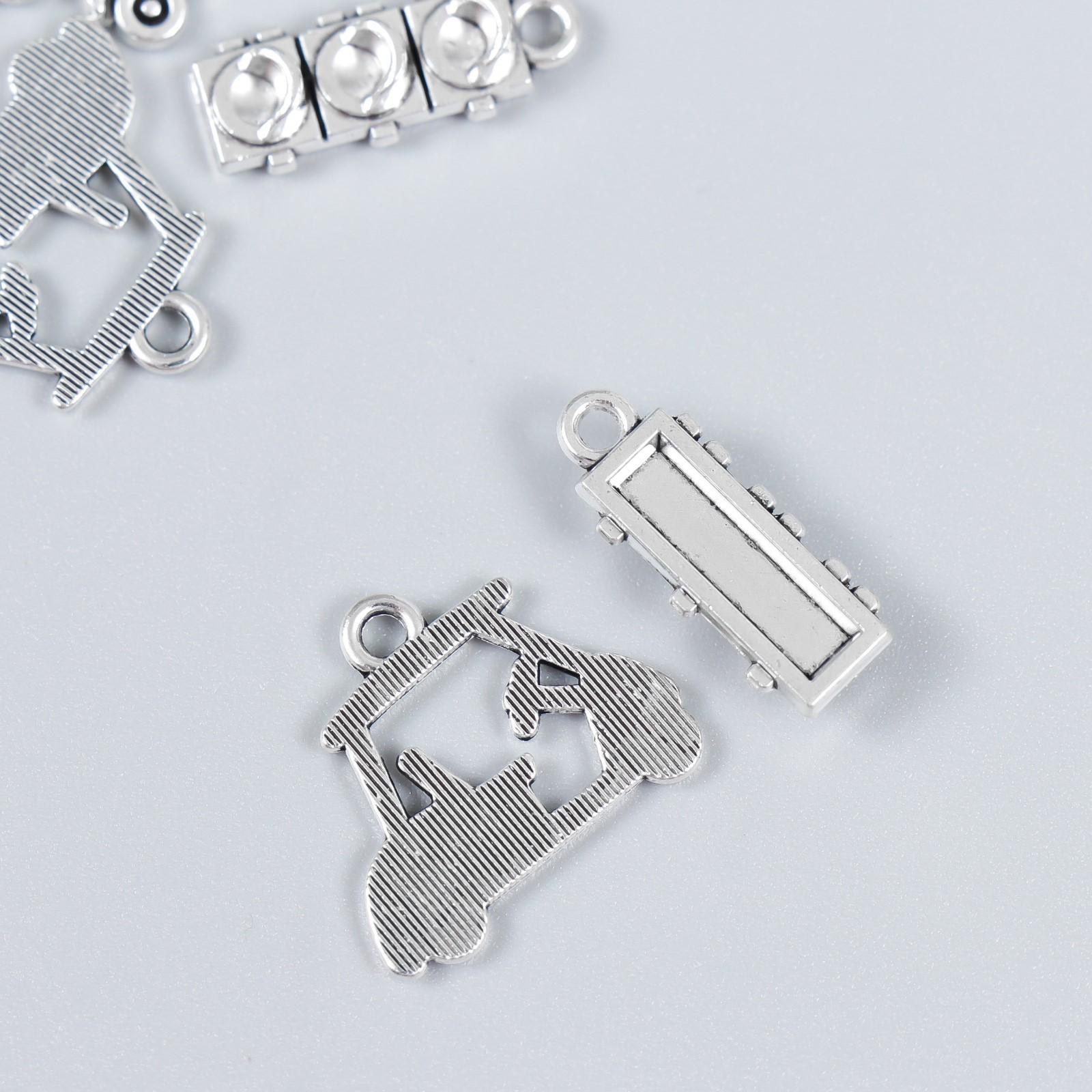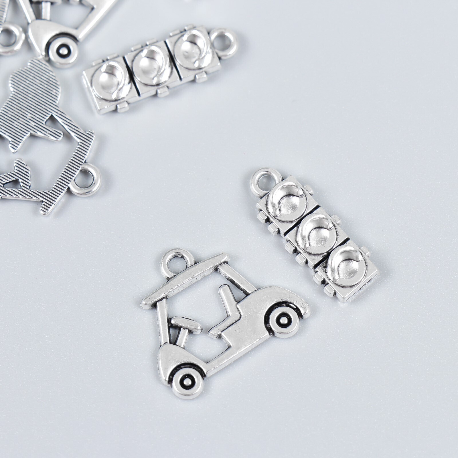 Декор для творчества металл "Машинка и светофор" серебро набор 5+5 шт 1,9х1,7 см