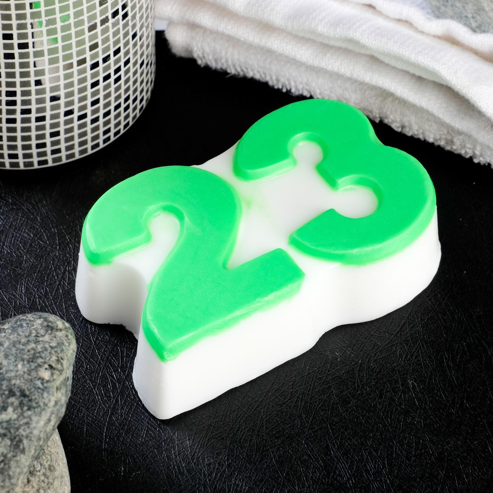 Фигурное мыло "23" зелёное на белом, 95гр
