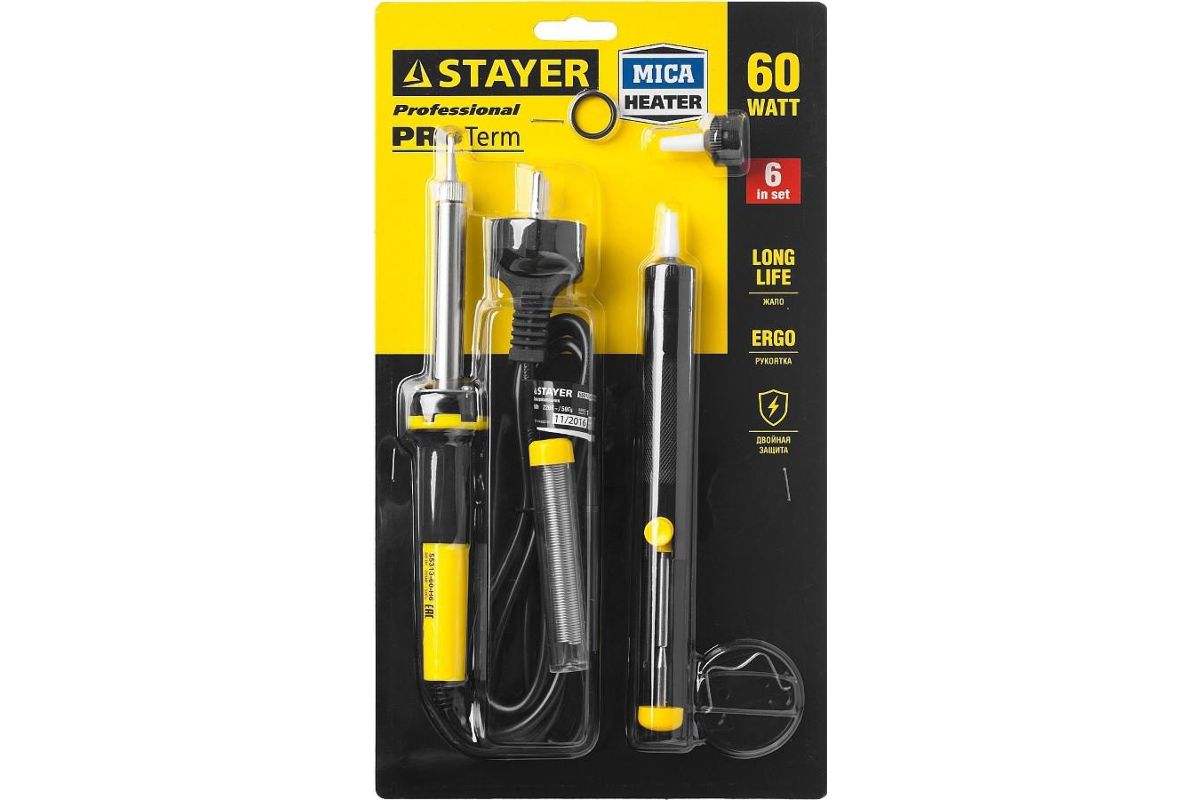 Паяльник STAYER 55313-60-H6 набор 55300 подставка припой жало сменное шприц насадка на жало 60Вт