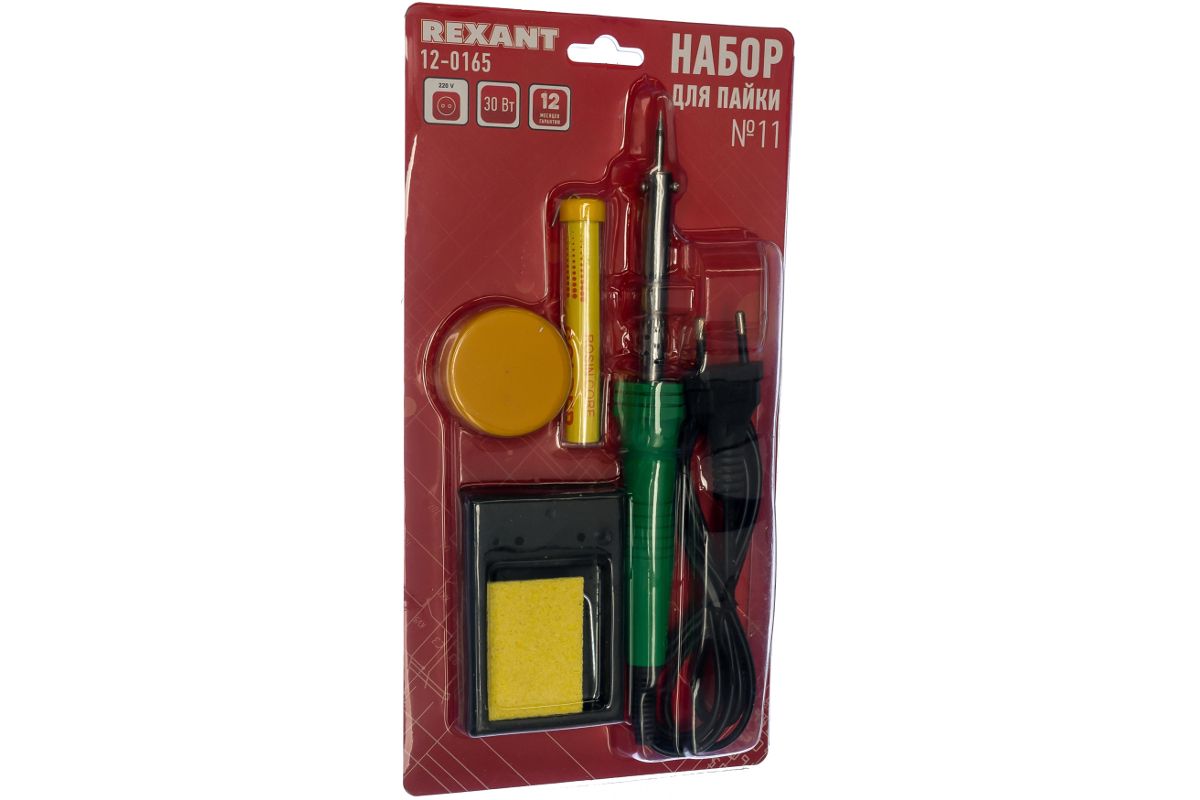 Набор для пайки REXANT 462925 №11 (паяльник 30Вт, подставка, губка для удаления припоя, канифоль,