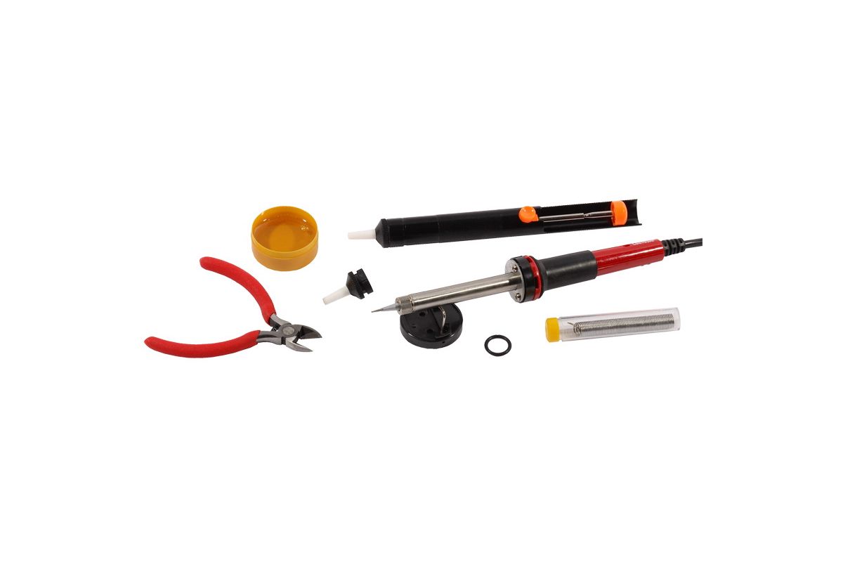 Набор д/паяльных работ СВЕТОЗАР, паяльник SV-55300+подстав.+припой+жало сменное+шприц+насад.на жало+канифоль+кусач., 60Вт