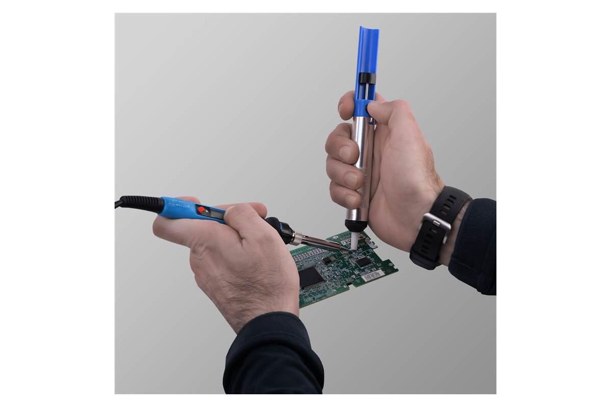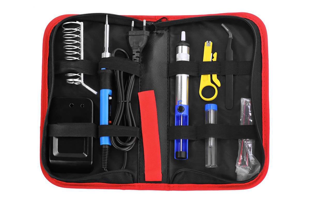 Преимущества и особенности : Полноценный комплект для проведения пайки; Паяльник с цифровым управлением; Цифровой регулятор для установки температуры; 6 сменных наконечников разных форм и размеров; Подставка с губкой для очистки жал; Припой; Пинцет; Оловоотсос; Пенал для хранения и транспортировки;