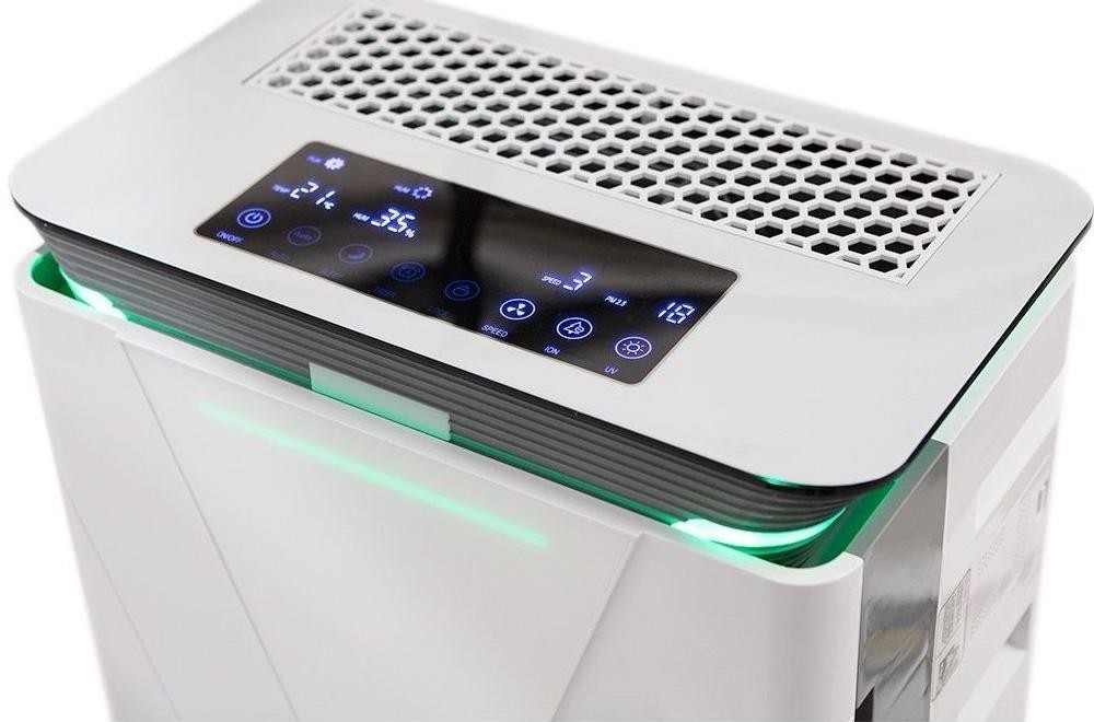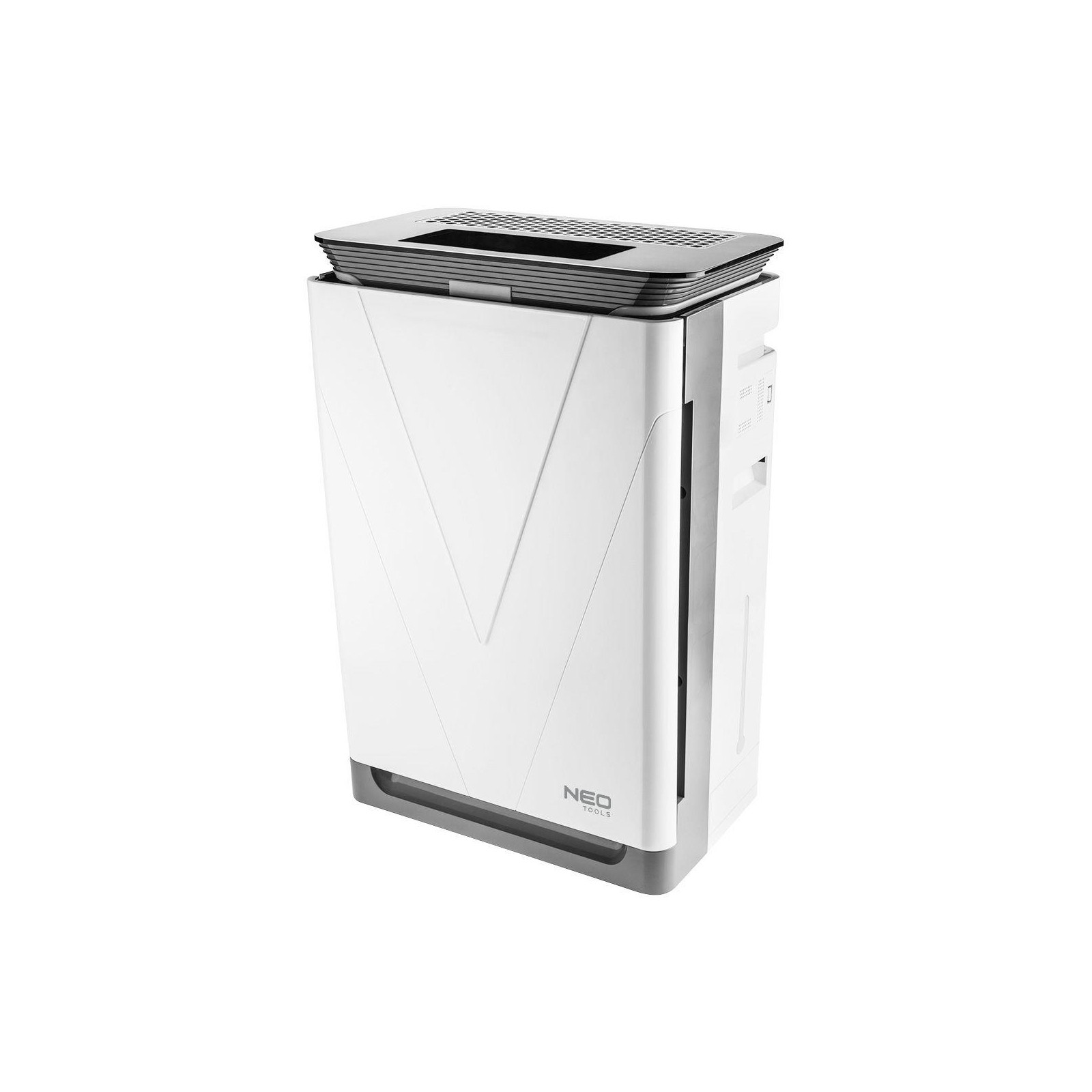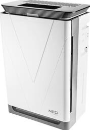 Очисник повітря 6 в 1, ультрафіолетова лампа UVC, іонізатор, NEO. Очисник повітря з 4-х ступінчастою системою фільтрації, ультрафіолетовою лампою UVC іонізатором повітря та функцією зволоження повітря є найсучаснішим продуктом у пропозиції очисників NEO. Забезпечує продуктивність на рівні 420 м3/год у приміщенні площею до 50 м2. Високоефективний фільтр HEPA фільтрує 99,97% дрібних частинок пилу, пилку, кліщів та забруднювачів повітря з PM 2,5. Фільтр з активованим вугіллям нейтралізує небажані запахи приготування їжі та куріння. Дрібний фільтр попереднього очищення утримує волосся, пластівці та ворсинки, роблячи повітря у приміщенні більш здоровим та чистим. Фотокаталітичний фільтр підвищує ефективність пристрою. Бактерії та хімічні сполуки, що осідають на поверхні спеціального фотокаталітичного покриття, внаслідок хімічних реакцій розпадаються на нешкідливі речовини – вуглекислий газ та воду.