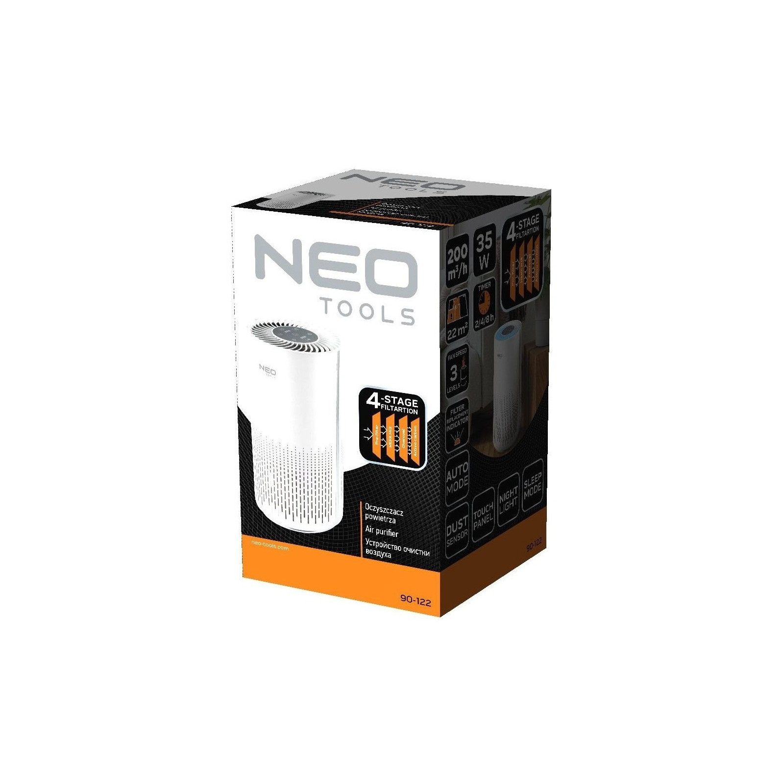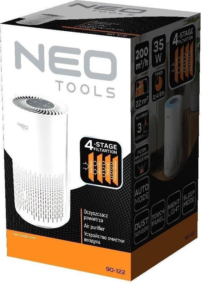 Очищувач повітря NEO із 4-ступінчастою системою фільтрації. Має нічне підсвічування та функцію таймера. Ефективний HEPA-фільтр відфільтровує 99,97% дрібних частинок пилу, пилку, пилових кліщів та забруднень повітря PM 2.5. Фільтр із активованим вугіллям нейтралізує небажані запахи. Тонкий фільтр попереднього очищення утримує волосся, пластівці та ворсинки, забезпечуючи більш здорове та чисте повітря в приміщенні. Робота очищувача на низькій швидкості з рівнем шуму 30 дБ не порушує ваш сон та відпочинок. При високій швидкості та помірному обсязі повітря в приміщенні очищається ефективніше. Керування за допомогою сенсорної панелі з індикаторами якості повітря та зносу фільтра. Підходить для приміщень площею 22 м2.