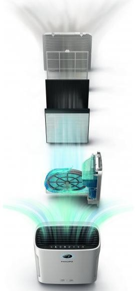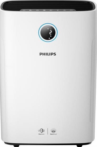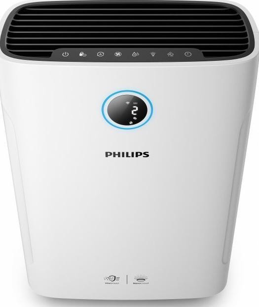 Очищувач повітря Philips «2 в 1» очищає повітря в приміщеннях площею до 85 м²* і швидко зволожує його зі швидкістю 600 мл/год. Можливість керування через додаток та вбудовані датчики, які допомагають очищувачу повітря сканувати стан повітря та автоматично підлаштовувати рівень зволоження, одночасно очищуючи повітря від алергенів та забруднюючих речовин.