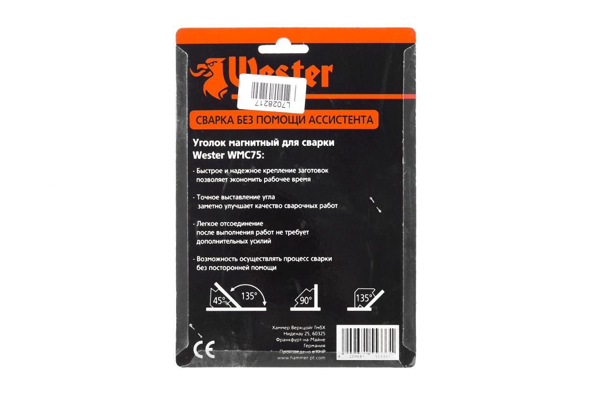Уголок магнитный для сварки WESTER WMC75 углы 45°/90°/135° до 35кг