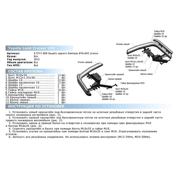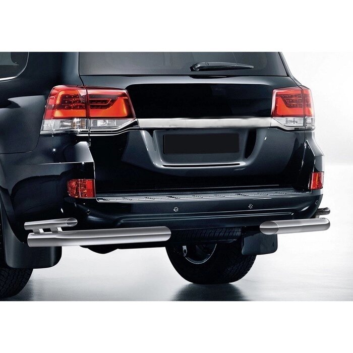Защита заднего бампера d76+d42 уголки Rival для Toyota Land Cruiser 200 рестайлинг (кроме Executive Lounge и TRD)