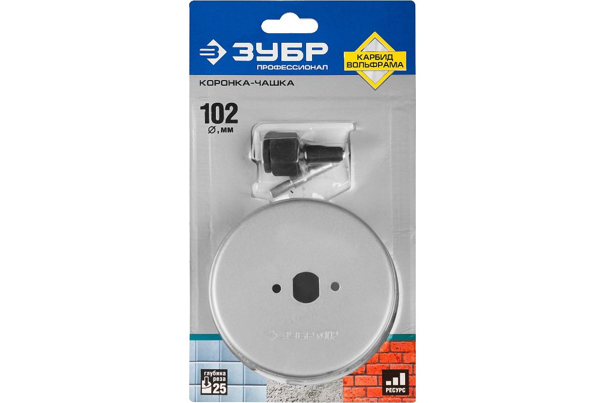 Коронка-чашка Зубр Профессионал 33360-102_z01 102мм X 25мм с карбид-вольфр. покрытием, в сборе