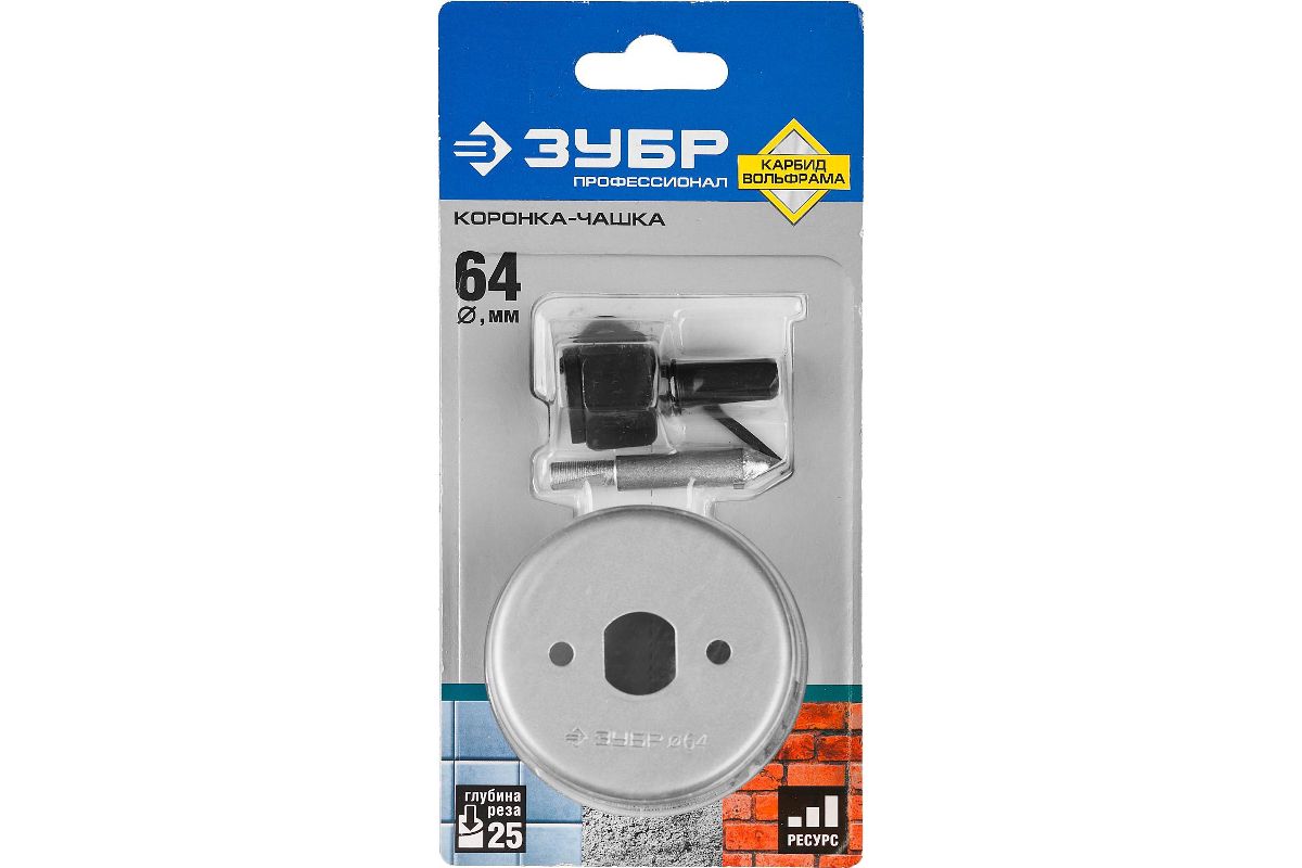 Коронка-чашка Зубр Профессионал 33360-064_z01 64мм X 25мм с карбид-вольфр. покрытием, в сборе
