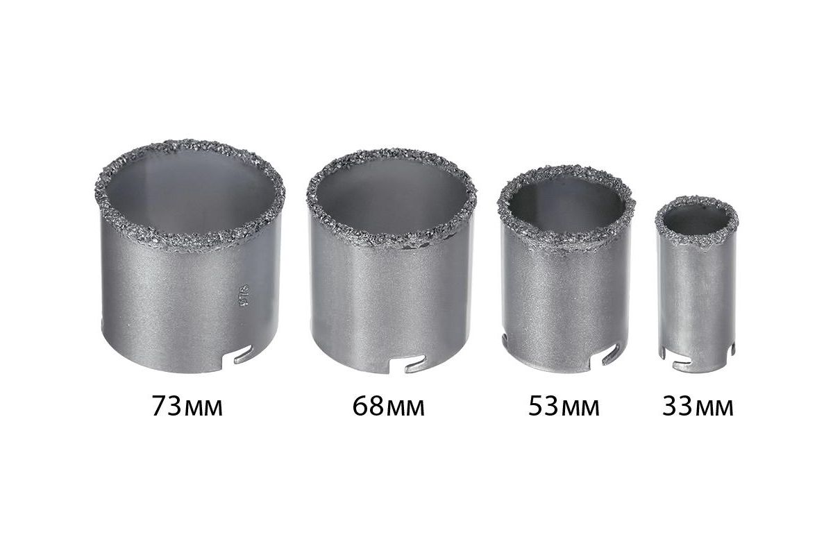 - Диаметры коронок: 33, 53, 58, 73 мм;