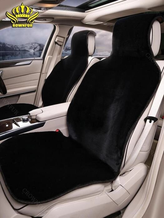 Меховая накидка на сиденья автомобиля в салон чехлы черная 1 штука