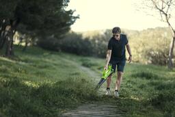 Вес без аккумулятора меньше 3 кг. Воздуходувка рассчитана на работу одной рукой.