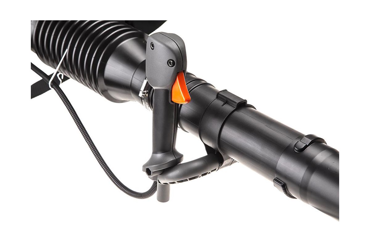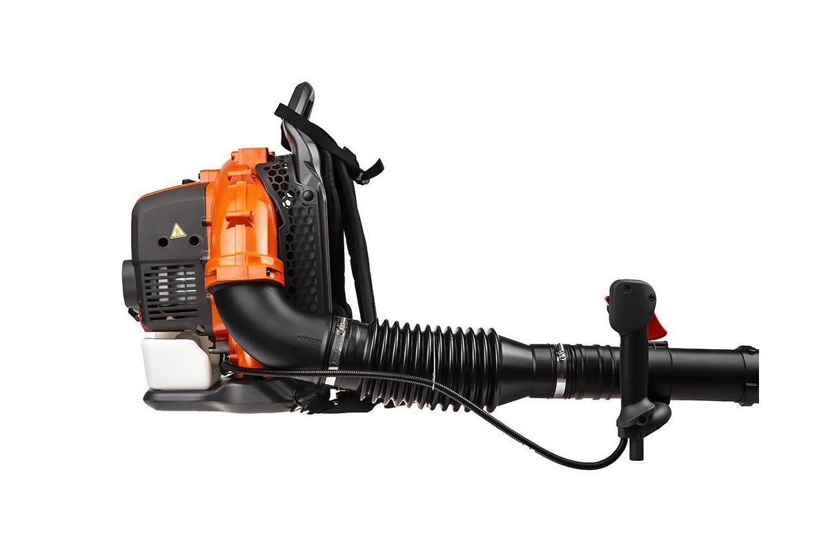 Воздуходувка ранцевая. Её вес равномерно распределяется на спину и плечи и меньше утомляет во время работы.