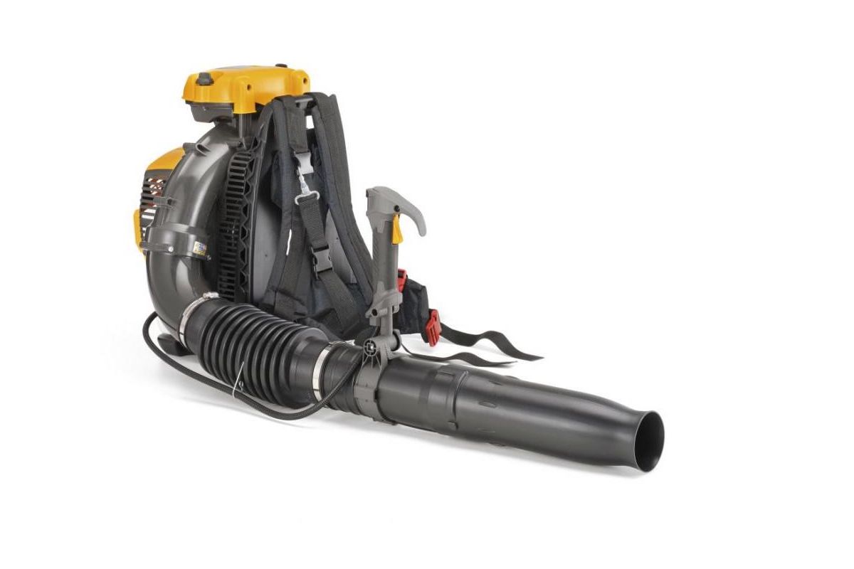 Воздуходувка ранцевая. Её вес равномерно распределяется на спину и плечи и меньше утомляет во время долгой работы.