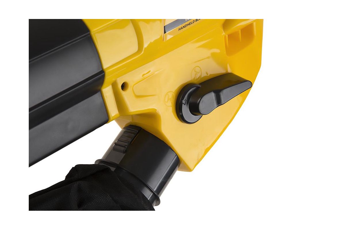 Скорость настраивается регулятором с 6 позициями. Удобно подбирать скорость для лёгких листьев и мусора тяжелее.