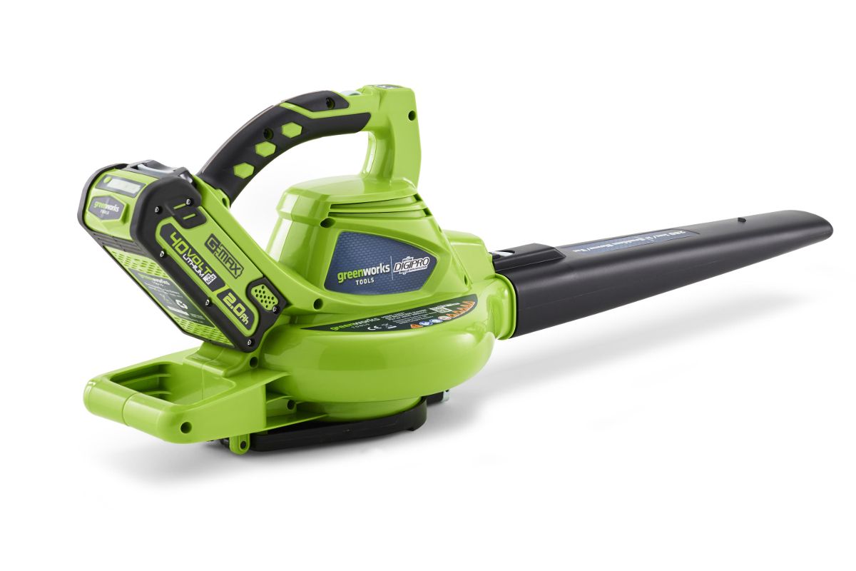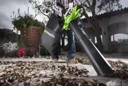 Воздуходувка пылесос садовый аккумуляторный Greenworks линейки 40 вольт (модель GD40BVK4) - предназначен для уборки территорий от пыли и мусора, а также от опавших листьев.
