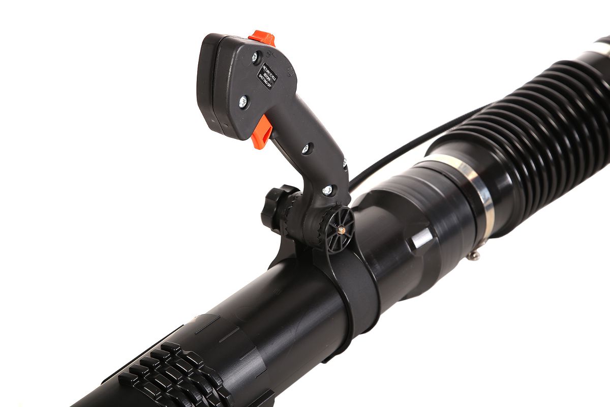 Основные элементы управления находятся на рукоятке воздуходувки. Удобно управлять одной рукой.