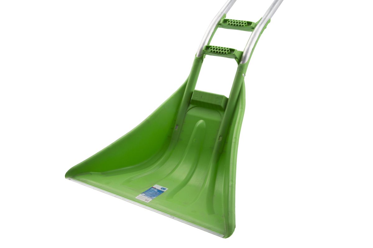 - Он имеет анатомическую ковшеобразную форму, позволяющую захватывать большие объемы снега, минимизируя нагрузку на поясничный отдел позвоночника;