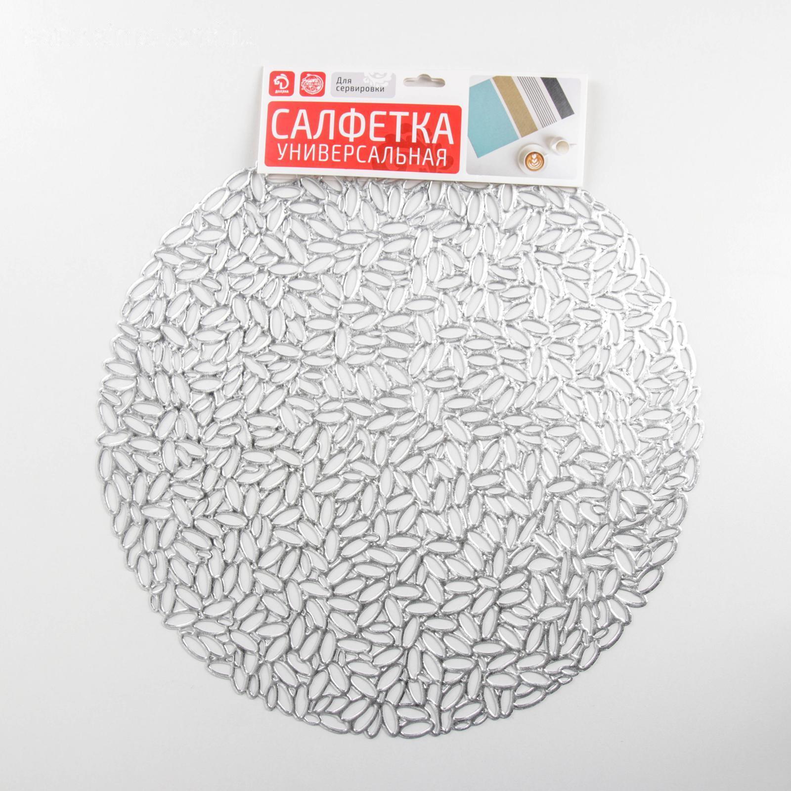 Набор салфеток сервировочных на стол Доляна «Манифик», d=38 см, 4 шт, цвет серебряный