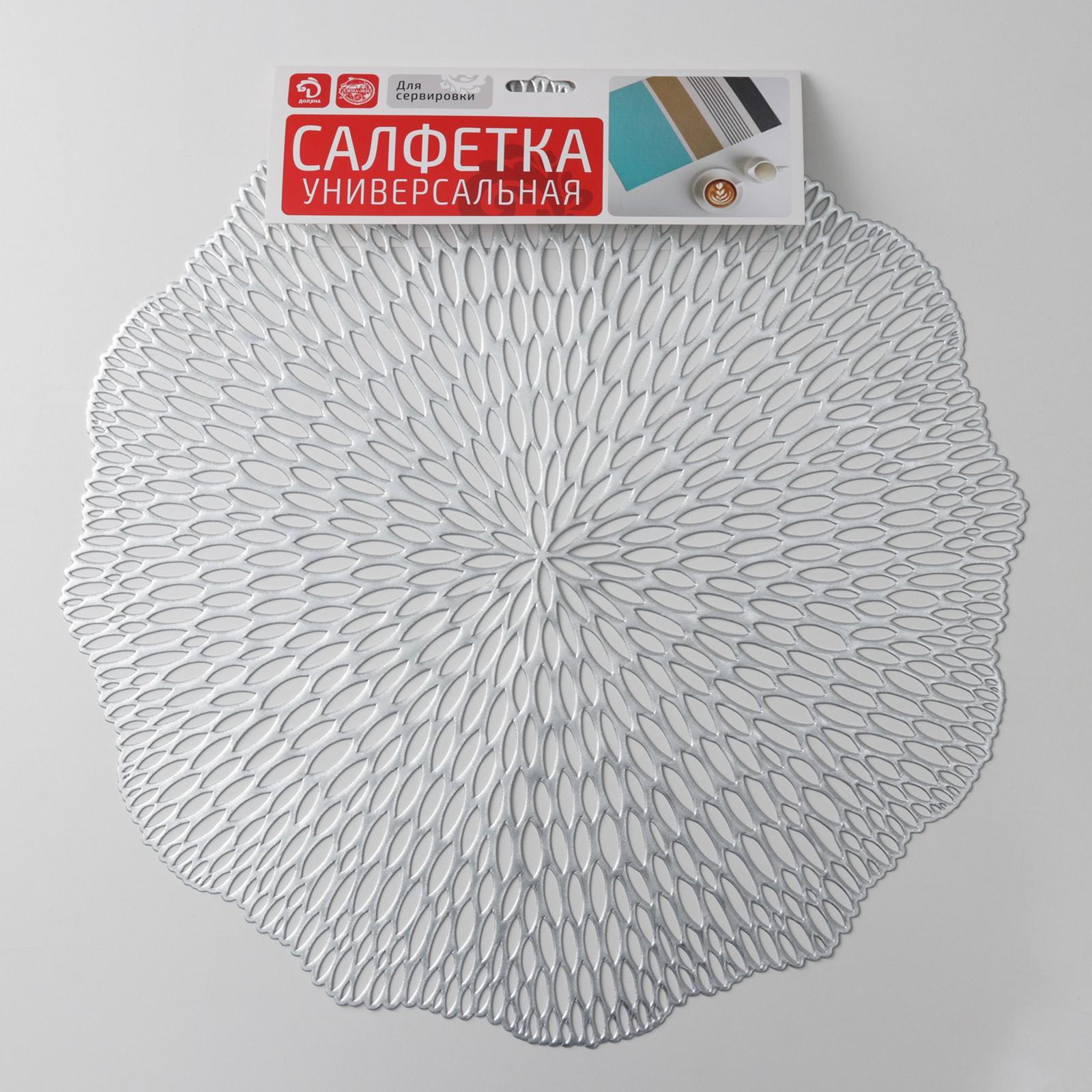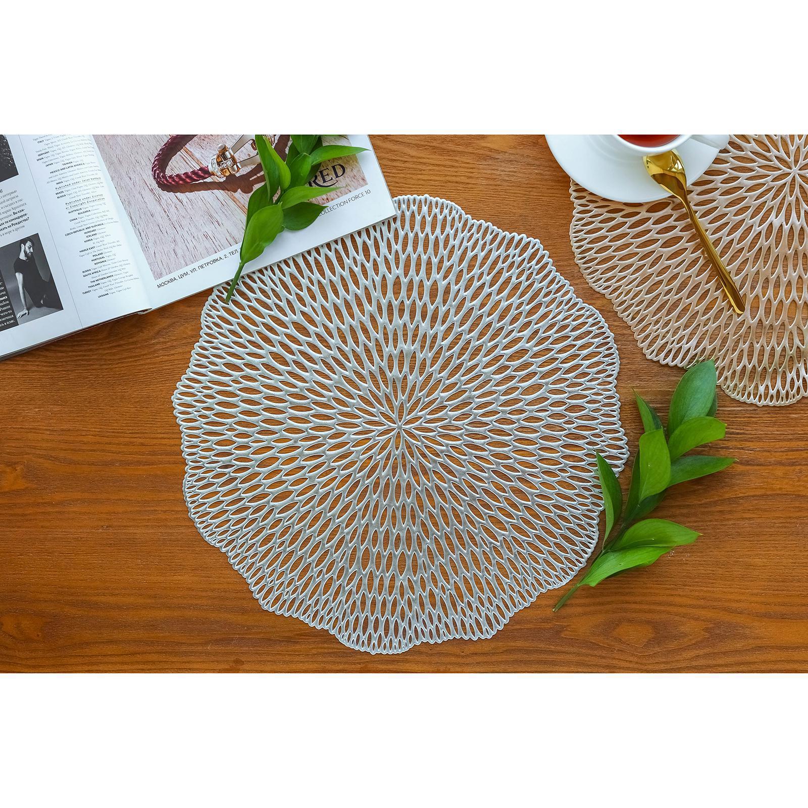Набор салфеток сервировочных на стол Доляна «Мэри», d=38 см, 4 шт, цвет серебряный