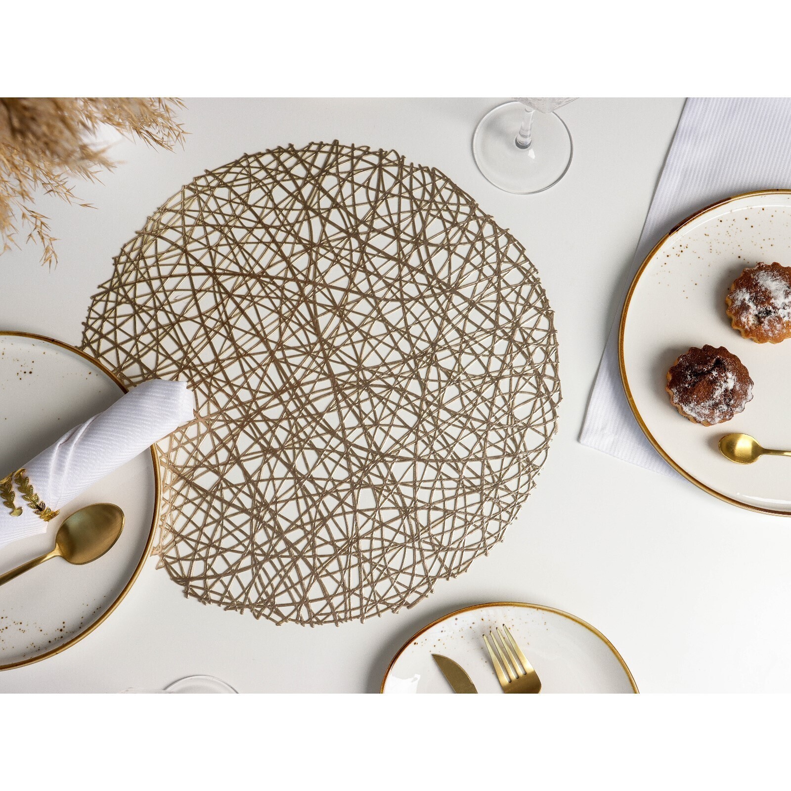 Набор салфеток сервировочных на стол Доляна «Паутинка», d=38 см, 4 шт, цвет золотой