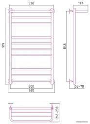 - Комплектация Полотенцесушитель - 1 шт.Кронштейн телескопический - 1 к-т.Спускной клапан - 1 шт.Заглушка - 1 шт.Паспорт - 1 шт.Полотенцесушитель упакован в полиэтиленовый пакет и коробку из гофрокартона.Для подключения потребуется: два соединительных элемента угловых/прямых.