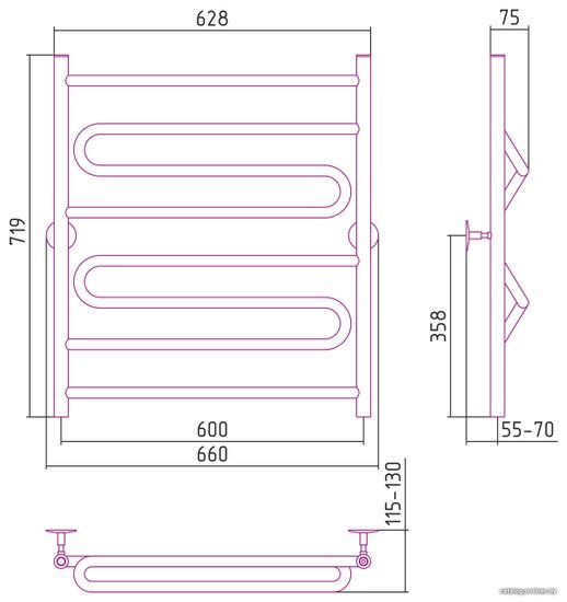 - Комплектация Полотенцесушитель - 1 шт.Кронштейн телескопический - 1 к-т.Спускной клапан - 1 шт.Заглушка - 1 шт.Паспорт - 1 шт.Полотенцесушитель упакован в полиэтиленовый пакет и коробку из гофрокартона.Для подключения потребуется: два соединительных элемента угловых/прямых.
