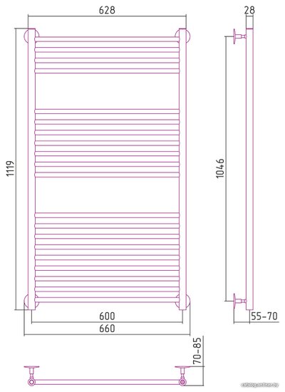- Комплектация Полотенцесушитель - 1 шт.Кронштейн телескопический - 1 к-т.Спускной клапан - 1 шт.Заглушка - 1 шт.Паспорт - 1 шт.Полотенцесушитель упакован в полиэтиленовый пакет и коробку из гофрокартона.Для подключения потребуется: два соединительных элемента угловых/прямых.