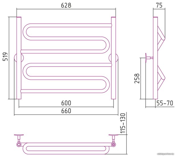 - Комплектация Полотенцесушитель - 1 шт.Кронштейн телескопический - 1 к-т.Спускной клапан - 1 шт.Заглушка - 1 шт.Паспорт - 1 шт.Полотенцесушитель упакован в полиэтиленовый пакет и коробку из гофрокартона.Для подключения потребуется: два соединительных элемента угловых/прямых.