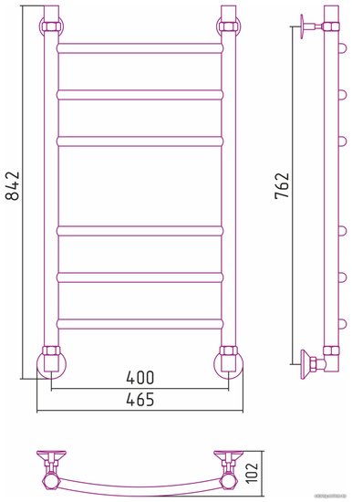 - Комплектация Полный комплект для водяного подключения полотенцесушителя через угловые элементы с узлами для сброса воздуха.