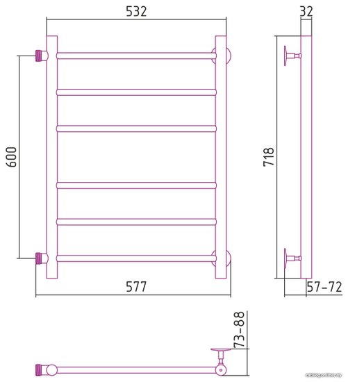 - Комплектация Полотенцесушитель - 1 шт.Кронштейн телескопический - 1 к-тВоздушный клапан - 2 шт.Паспорт - 1 шт.Полотенцесушитель упакован в полиэтиленовый пакет и коробку из гофрокартона.Для подключения потребуется: два соединительных элемента угловых/прямых.