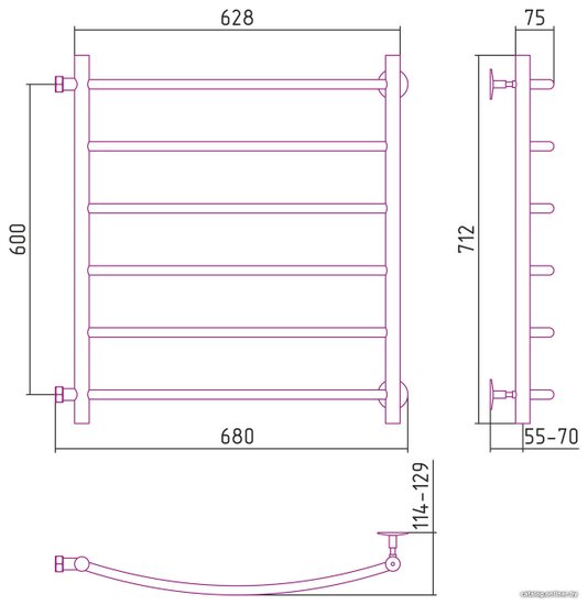 - Комплектация Полотенцесушитель - 1 шт.Кронштейн телескопический - 1 к-тВоздушный клапан - 2 шт.Паспорт - 1 шт.Полотенцесушитель упакован в полиэтиленовый пакет и коробку из гофрокартона.