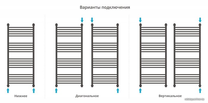 - Подключение боковое, нижнее, диагональное