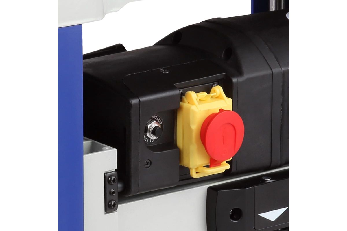 - Модель оборудована индикатором строгания, отображающим высоту снятия за один проход, и рукояткой регулировки, перемещающей рабочую платформу;