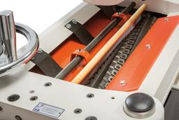 - Для удобной подачи заготовок стол оснащается подвижными роликами;