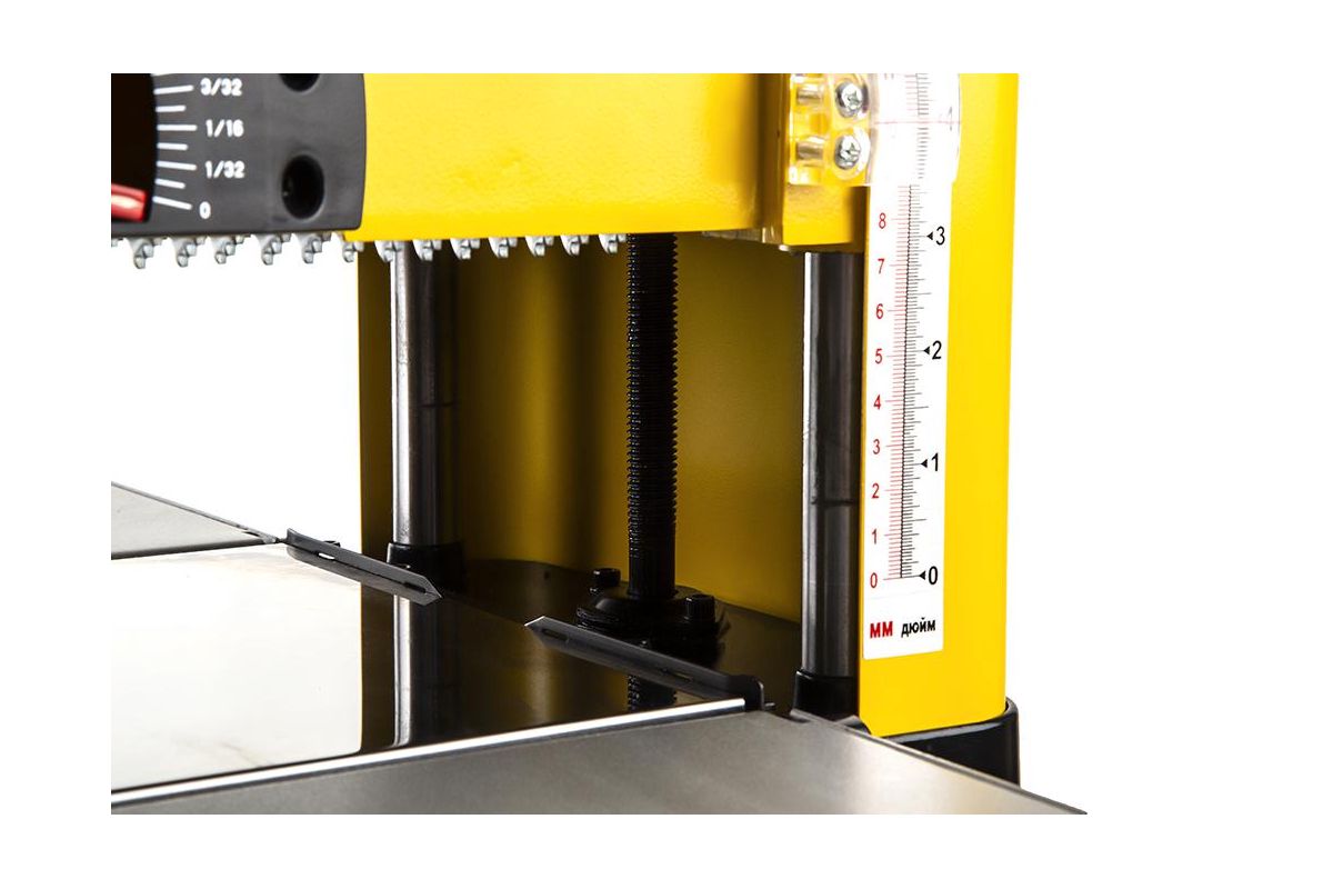 Максимальная глубина строгания – 2,4 мм. Настраивается с помощью рукоятки и измерительной шкалы.