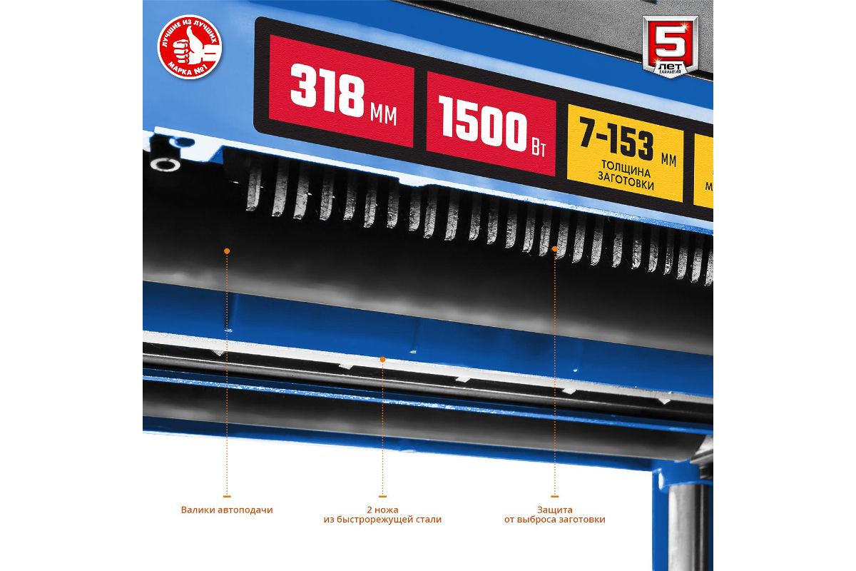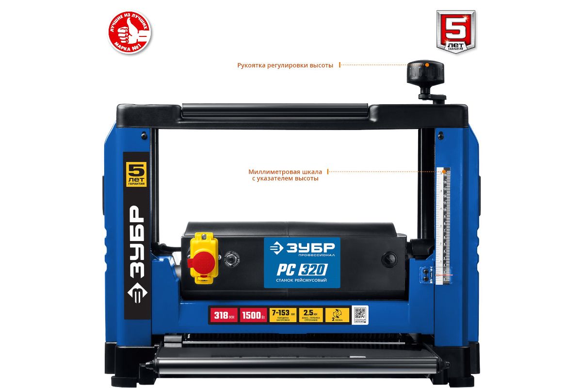 Рейсмусовый станок ЗУБР РС-320 ширина стр. 318мм, до 153мм, 2 ножа, 9000об/мин, 1500Вт, 8м/мин