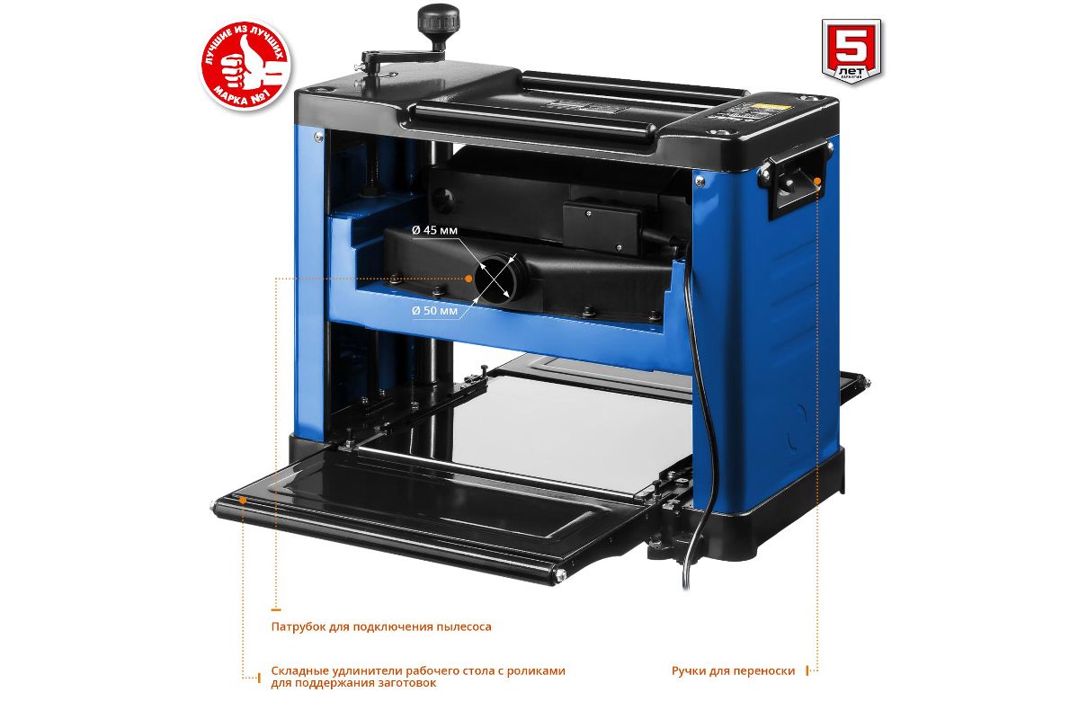 Переносной станок предназначен для строгания заготовок из древесины в заданный размер по толщине. Мощный двигатель с защитой от перегрузки и удлинители рабочего стола для точной установки толщины строгания позволяют выполнить работу не только быстро, но и точно.
