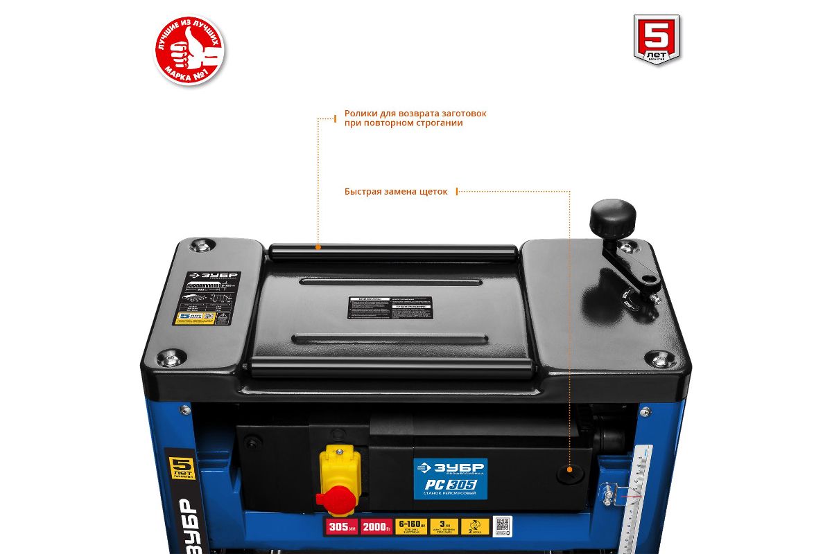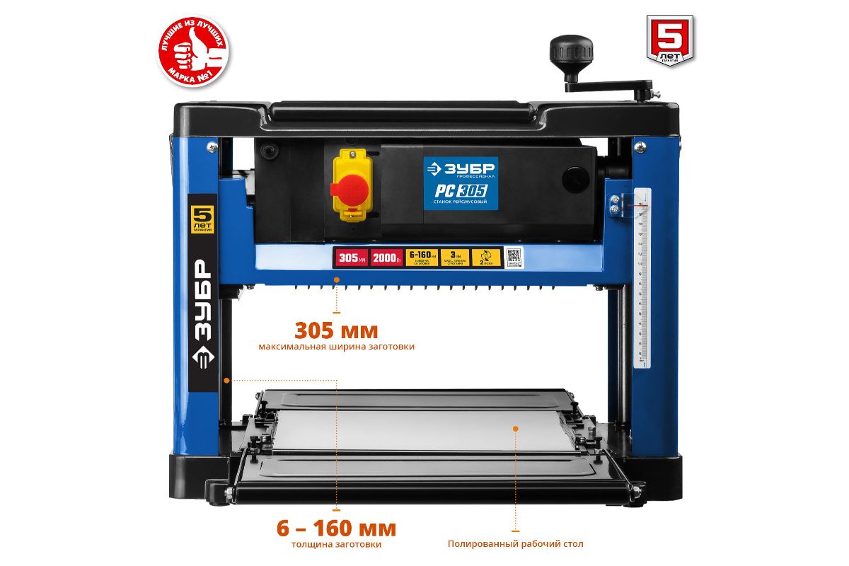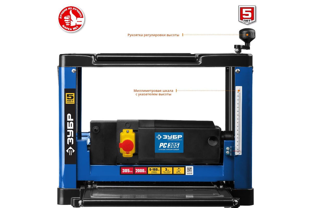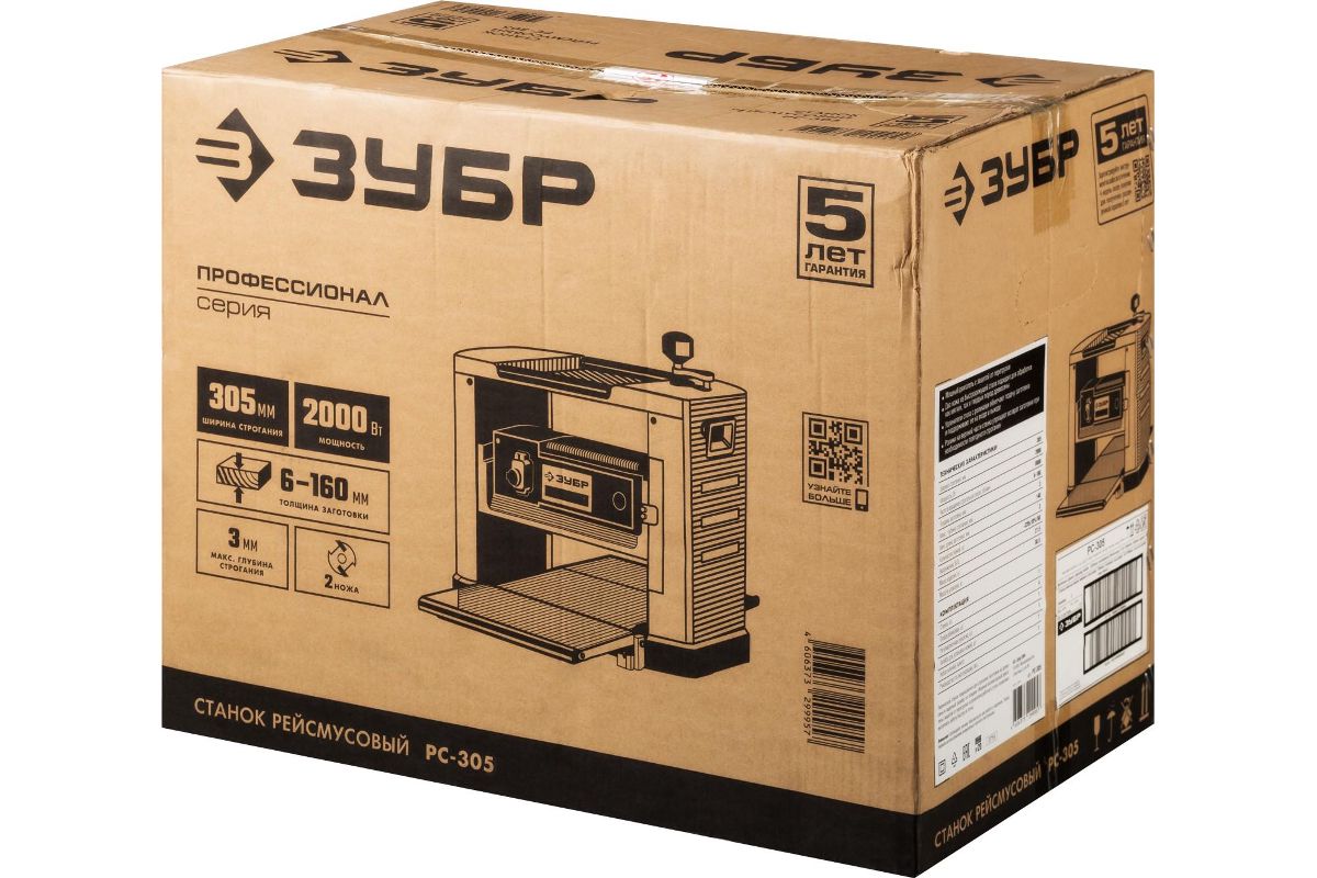 Рейсмусовый станок ЗУБР РС-305 ширина стр. 305мм, до 160мм, 2 ножа, 8000 об/мин, 2000Вт, 6м/мин