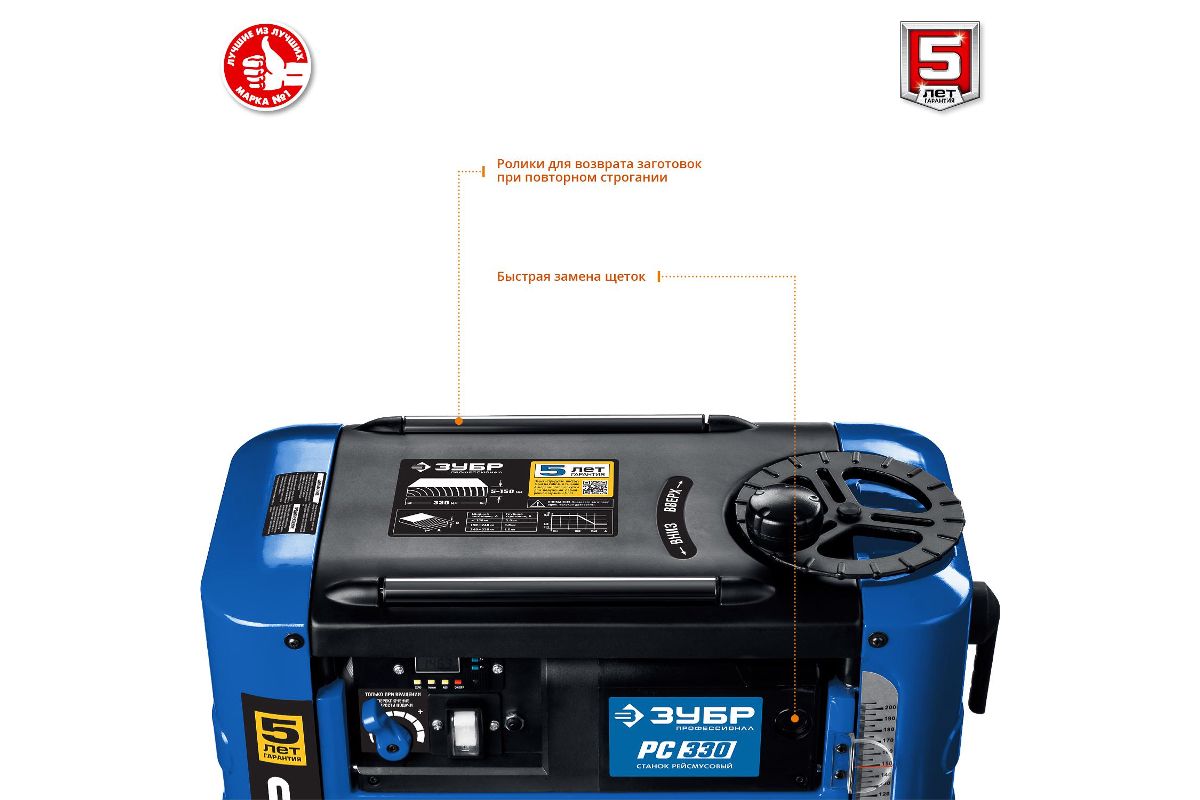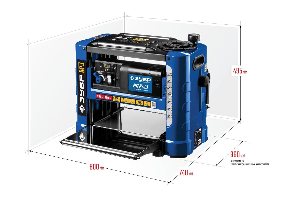 Рейсмусовый станок ЗУБР РС-330 ширина стр. 330мм, 2 ножа, 9000об/мин, 4 и 6м/мин, 1800Вт