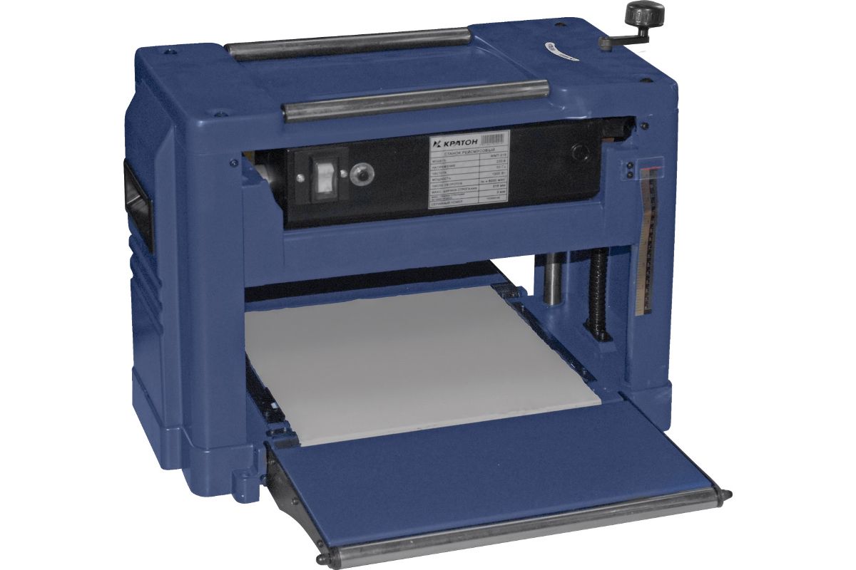 КРАТОН WMT-318 – рейсмусовый станок для строгания досок и деревянных брусков. Незаменим на небольшом производстве, в домашней мастерской и на даче. Два остро заточенных ножа аккуратно и точно срезают слой древесины заданной толщины. Простая система регулировок делает работу со станком удобной и безопасной.